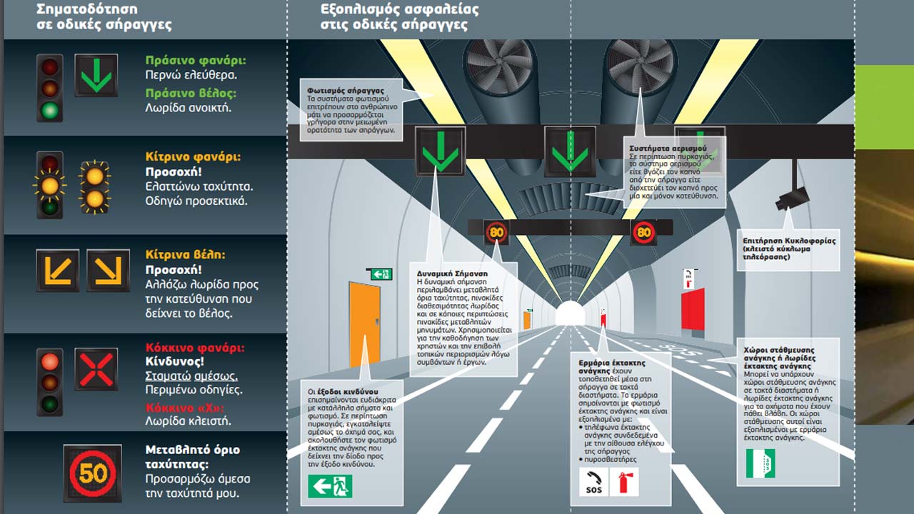 Χρήσιμη συμβουλή: Προσέχουμε πάντα κατά την έξοδό μας από ένα τούνελ για ενδεχόμενες ριπές αέρα πλευρικά του οχήματός μας και για πιθανή αλλαγή πρόσφυσης λόγω καιρικών συνθηκών (βρεγμένο ή χιονισμένο οδόστρωμα εκτός τούνελ).