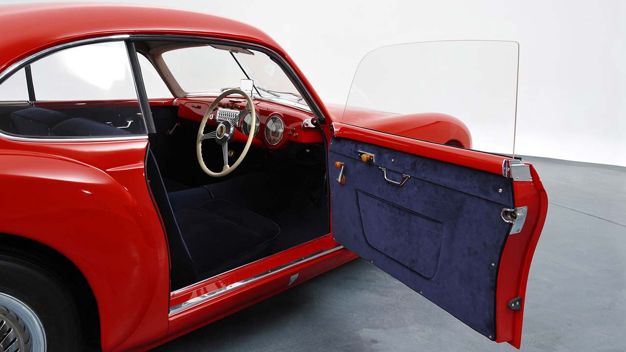 Η διθέσια berlinetta αποτελείται από σωληνωτό πλαίσιο και χαλύβδινο σκελετό συγκολλημένο με ένα αμάξωμα λαξευμένο πάνω σε αλουμίνιο. Αξίζει να σημειωθεί πως το 1951 ο ίδιος ο διευθυντής του μουσείου και διάσημος αρχιτέκτονας, Arthur Drexler, την αποκάλεσε “κυλιόμενο γλυπτό”. Πρόκειται για το πρώτο αυτοκίνητο στον κόσμο που κατάφερε να κατακτήσει μία θέση σε μουσείο μοντέρνας τέχνης.