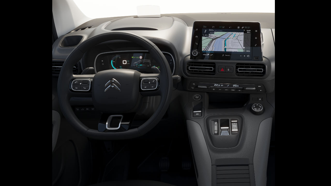 Η οθόνη αφής 8 ιντσών του συστήματος πολυμέσων του e-Berlingo περιλαμβάνει την ενότητα “Energy”, που παρέχει πρόσβαση στις ηλεκτρικές πτυχές του αυτοκινήτου, συμπεριλαμβανομένης της ροής ενέργειας, στατιστικά κατανάλωσης και την ενεργοποίηση της προγραμματισμένης φόρτισης ή την προεπιλεγμένη θερμοκρασία της καμπίνας. Ο πίνακας πληροφοριών του οδηγούν είναι μια οθόνη υψηλής ευκρίνειας 10 ιντσών (στάνταρ από τη Feel Pack έκδοση), που διαμορφώνεται ανάλογα με τις ανάγκες.