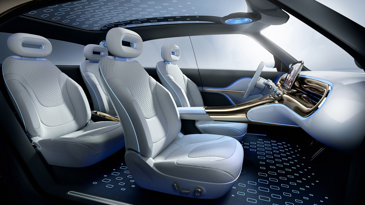 Η καμπίνα αποκαλύπτεται με το ιδιαίτερο άνοιγμα των πορτών, το λεγόμενο “suicide doors”. Εκεί βλέπουμε ένα ιδιαίτερα φουτουριστικό περιβάλλον, το οποίο μπορεί να φιλοξενήσει αποκλειστικά τέσσερις επιβάτες. Όσο για την σχεδίαση, είναι μίνιμαλ και στο κέντρο βρίσκεται η ψηφιακή οθόνη αφής μεγέθους 12,8 ιντσών μέσα από την οποία θα πραγματοποιείται η ενημέρωση και ψυχαγωγία των επιβατών.