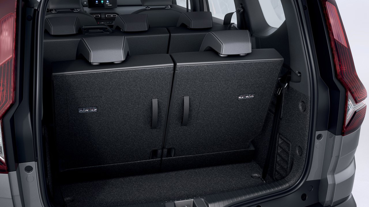 Περνάμε στο εσωτερικό, εκεί όπου υπάρχει και το μεγαλύτερο ενδιαφέρον, μιας και το Dacia Jogger προσφέρεται με τρίτη σειρά καθισμάτων. Το μεταξόνιο έχει εκτοξευθεί στα 2.897 χλστ., ώστε να υπάρχει επαρκής χώρος και για τους επιβάτες της τελευταίας σειράς, ενώ το σχήμα της οροφής εξασφαλίζει άπλετο χώρο και για το κεφάλι. Όσο για τον όγκο αποσκευών, κυμαίνεται από τα 160 έως τα 1.819 λτ., ενώ με την τελευταία σειρά αναδιπλωμένη ο χώρος αποσκευών αγγίζει τα 708 λτ. Από εκεί και πέρα, στην κεντρική κονσόλα υπάρχει μία ψηφιακή οθόνη αφής μεγέθους 8 ιντσών, η οποία περιλαμβάνει Android Auto και Apple CarPlay.