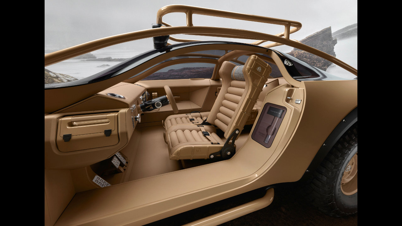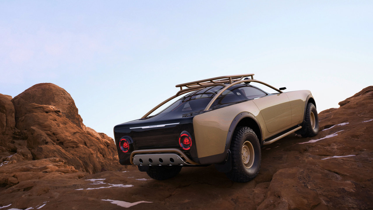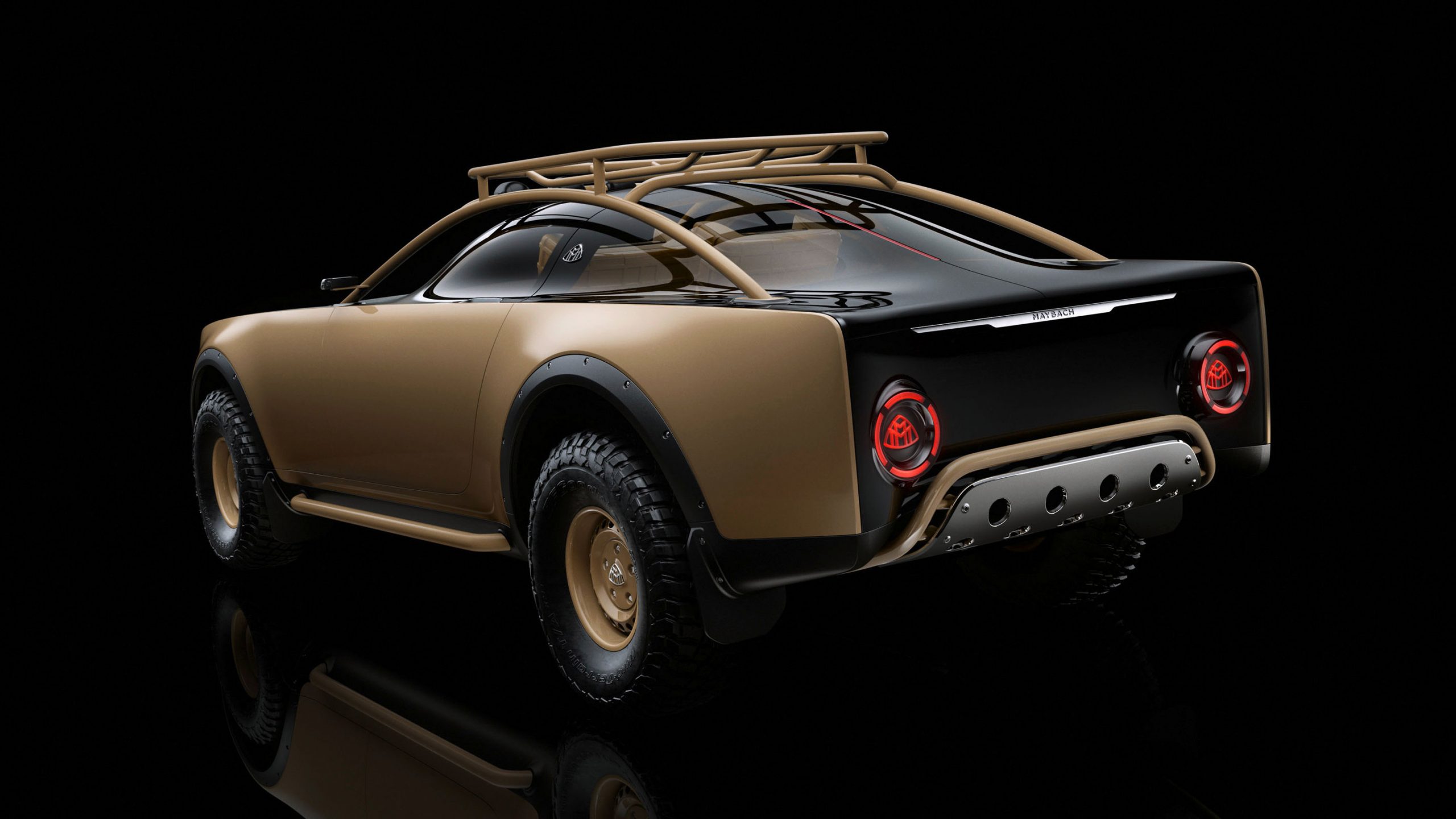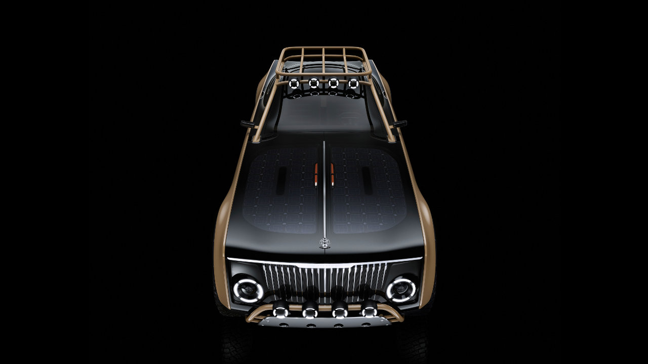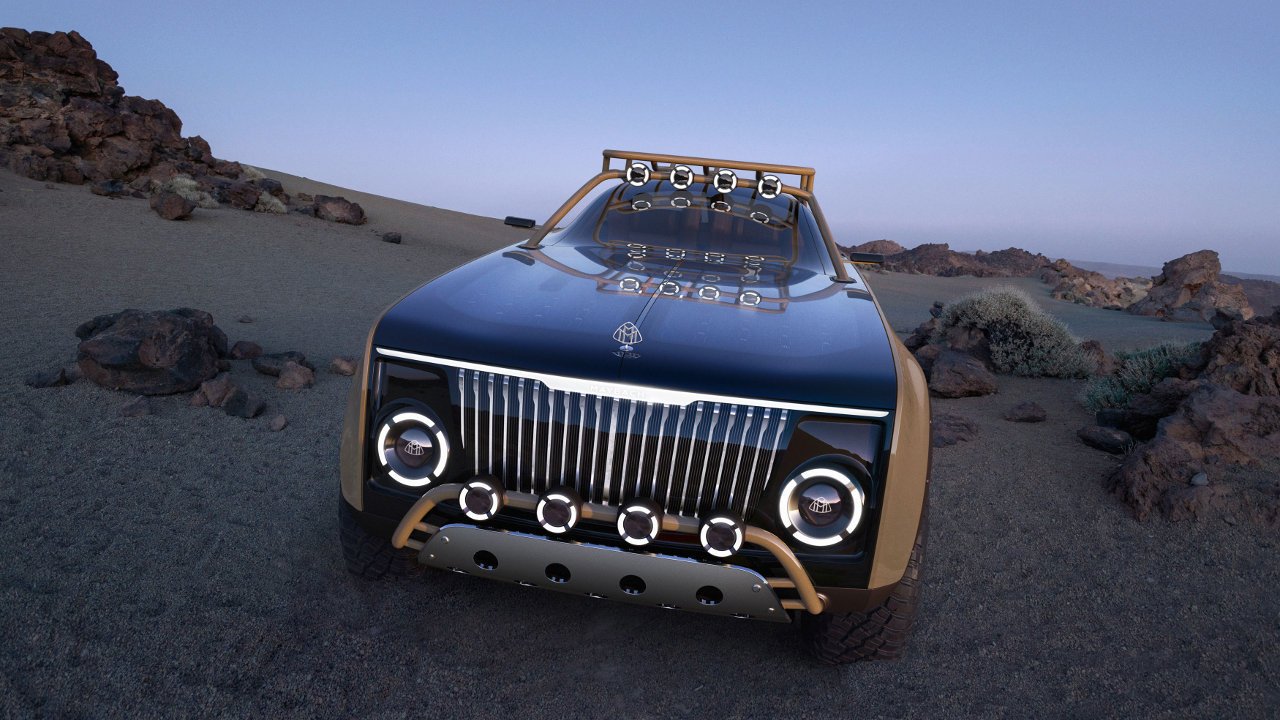 Οι τροχοί με τα μεγάλα εκτός δρόμου ελαστικά έρχονται ευθέως σε ελκυστική αντίθεση με τις coupe αναλογίες και την χαμηλή οροφή του Project Maybach, με highlight, το ενιαίο με την σχάρα οροφής roll bar, το οποίο “αναδύεται” με χάρη μπροστά από τις κολόνες του εμπρός παρμπρίζ και ακολουθεί πιστά το σχήμα της οροφής για να «βυθιστεί» ξανά στο αμάξωμα πίσω από την τρίτη κολόνα.