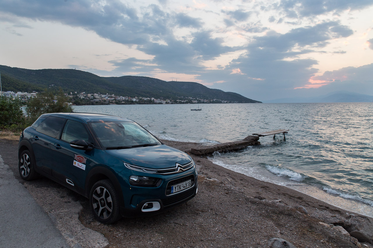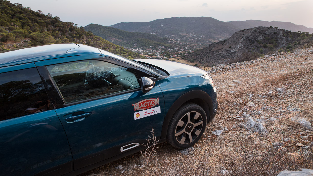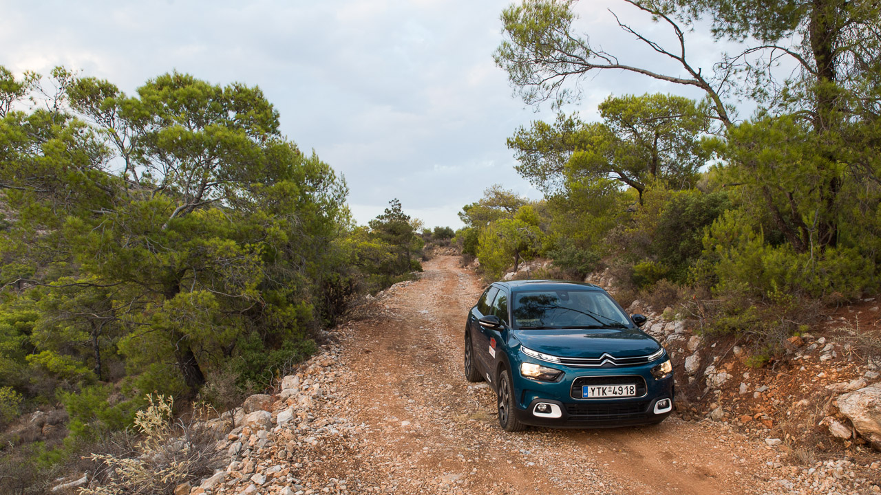 Επιπλέον τα crossover χαρακτηριστικά του μικρομεσαίου της Citroen με τη σχετικά μεγάλη απόσταση από το έδαφος και τις ικανοποιητικές διαδρομές της ανάρτησης μου έδωσαν τη δυνατότητα να κινηθώ με άνεση και στους χωματόδρομους που βρήκα μπροστά μου χωρίς να νιώθω ότι βασανίζω το C4 ή ότι βασανίζομαι εγώ.
