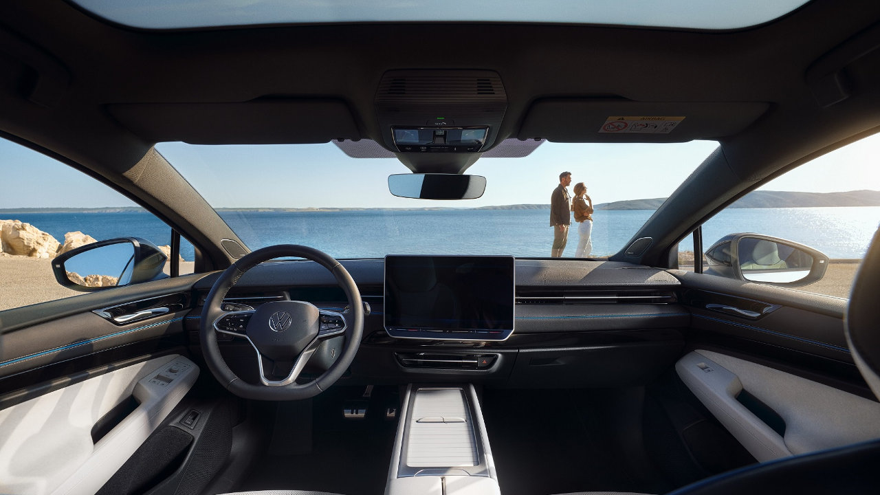 Ο οδηγός λαμβάνει άλλες σημαντικές πληροφορίες μέσω της στάνταρ head-up οθόνης επαυξημένης πραγματικότητας. Η καρδιά της οθόνης και της λειτουργίας της είναι η οθόνη του συστήματος Infotainment, στον βασικό εξοπλισμό στο ID.7: με διαγώνιο15 ιντσών η φιλοσοφία λειτουργίας της έχει σχεδιαστεί από το μηδέν. Για παράδειγμα, με βάση τα σχόλια των πελατών, η λειτουργία του κλιματισμού έχει ενσωματωθεί μόνιμα στο ανώτατο επίπεδο λειτουργίας. Υπάρχουν επίσης ελεύθερα ρυθμιζόμενα κουμπιά άμεσης πρόσβασης που προσφέρουν ακόμη μεγαλύτερη χρηστικότητα.