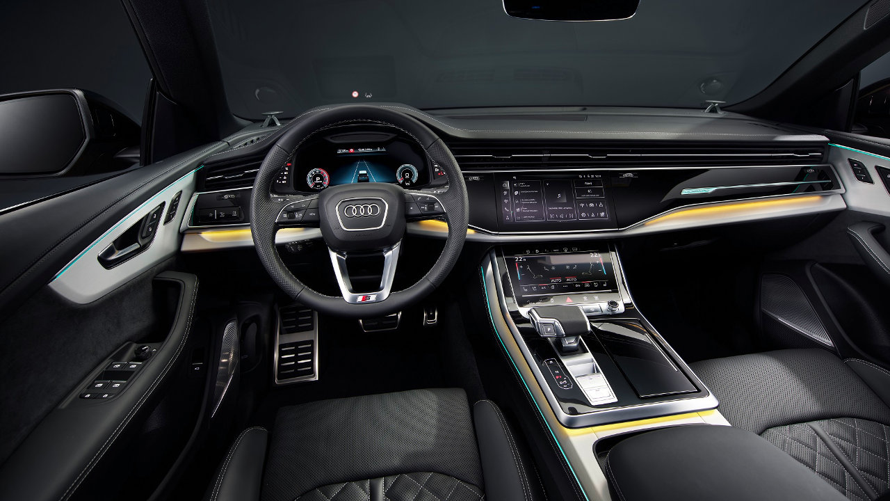Οι καινοτόμοι προβολείς με τεχνολογία HD Matrix LED και πρόσθετο φως laser καθώς και το ψηφιακό φως πορείας ημέρας, το οποίο βρίσκεται στην επάνω οριζόντια πλευρά, προσφέρουν στο Q8 μια ακόμα πιο δυναμική ταυτότητα. Σε συνδυασμό με τα διαθέσιμα για πρώτη φορά στο Q8 ψηφιακά πίσω φώτα OLED, γίνεται ακόμα πιο σαφής ο premium χαρακτήρας του μοντέλου.