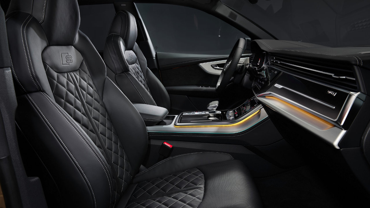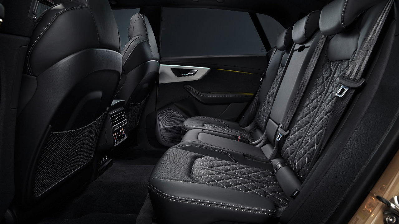 Στο εσωτερικό, οι ραφές στην ταπετσαρία των καθισμάτων στο βασικό μοντέλο περιλαμβάνονται πλέον στον βασικό εξοπλισμό σε γκρι χρωματική αντίθεση. Μπορεί να γίνει επιλογή ανάμεσα σε εννέα διακοσμητικά ένθετα. Επιπρόσθετα στις διαθέσιμες επιλογές όσον αφορά στον εξοπλισμό υπάρχουν τα εξής: Ξύλο Eschenmaser ασημί φυσικό για το βασικό μοντέλο, carbon με ραβδώσεις ματ και ματ βουρτσισμένο αλουμίνιο με ασημί λεπτομέρειες για το Q8 με το σπορ πακέτο S line.