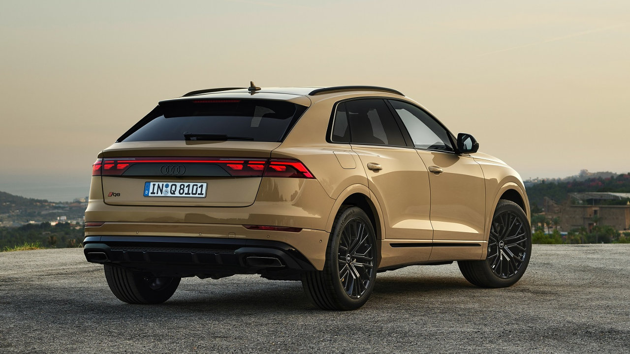 Νέο για όλους τους κινητήρες του Audi Q8 είναι το σύστημα εξαγωγής καυσαερίων με τις διαφορετικής σχεδίασης απολήξεις εξάτμισης. Πλησιάζοντας ακόμα περισσότερο στο SQ8 TFSI, το εξωτερικό πακέτο S line ξεχωρίζει με τις ξεκάθαρα τονισμένες πλευρικές εισαγωγές αέρα στον μπροστινό προφυλακτήρα.