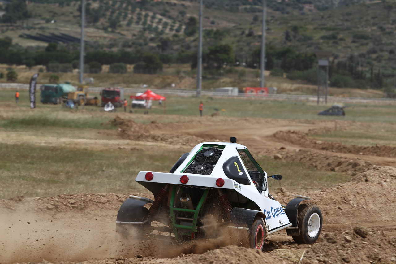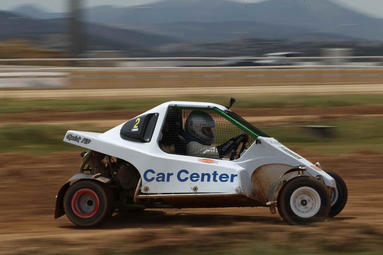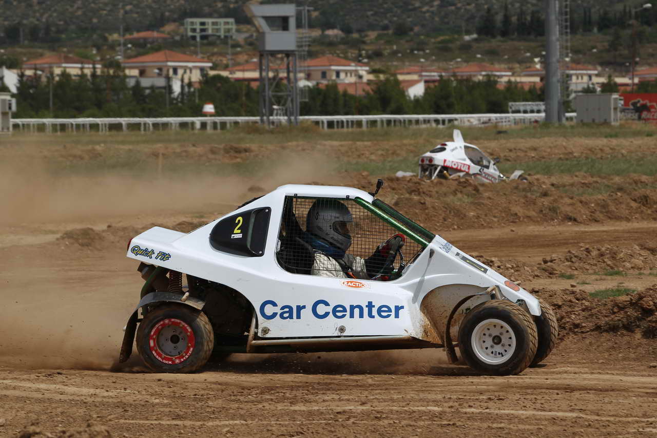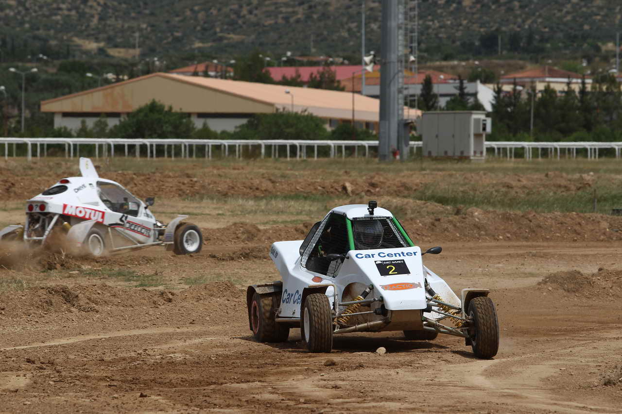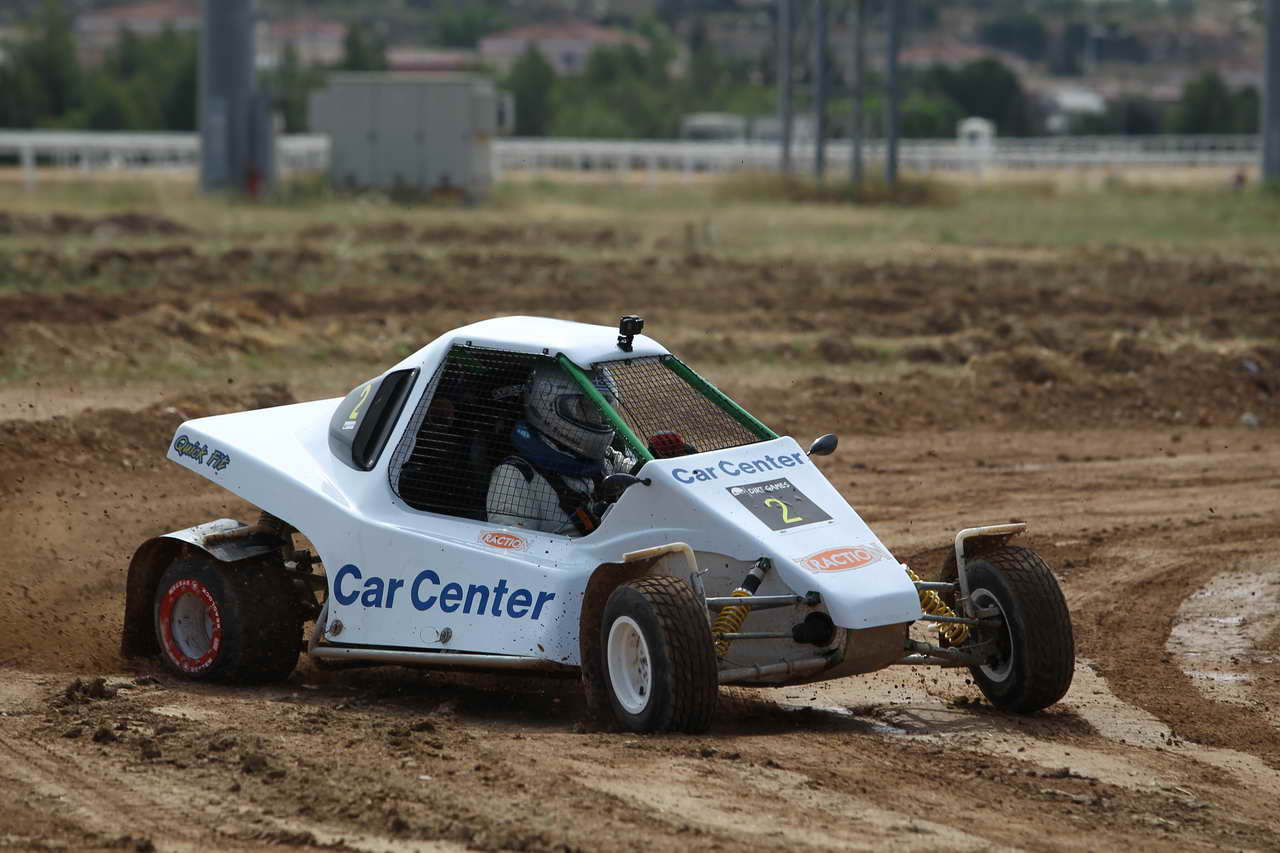 Λόγω έλλειψης χρόνου και ανειλημμένων επαγγελματικών υποχρεώσεων, αναγκάστηκα να γνωρίσω το Speedcar 2 που θα οδηγούσα απευθείας στον Ιππόδρομο Μαρκοπούλου, όπου φιλοξενήθηκε ο πρώτος γύρος του Dirt Games και οι οδηγοί ξεκινούσαν ανά ζευγάρια σε ειδικά διαμορφωμένη παράλληλη διαδρομή. Η πρώτη επαφή με τον θεσμό έγινε λοιπόν το Σάββατο 19 Μαΐου και αυτό που μου κέντρισε άμεσα την προσοχή, ήταν το στήσιμο των ομάδων αλλά και η παρουσία πολλών νέων ανθρώπων, οι οποίοι είναι φανερό πως θέλουν να δημιουργήσουν κάτι διαφορετικό. Η ημέρα περιελάμβανε τέσσερα περάσματα ελεύθερων δοκιμαστικών πριν τον αγώνα που είχε προγραμματιστεί για την Κυριακή 20 Μαΐου. Το πρώτο πέρασμα αφορούσε καθαρά στην προσαρμογή μου με τα νέα δεδομένα, καθώς έπρεπε να «βρω» τον λεβιέ, τα φρένα κ.λπ. Παρ’ όλα αυτά, η έμπειρη ομάδα του Γιώργου Καρανικόλα έχει δημιουργήσει ένα ιδιαίτερα φιλικό όχημα, που με βοήθησε στην άμεση προσαρμογή καθώς και στη μέγιστη διασκέδαση.