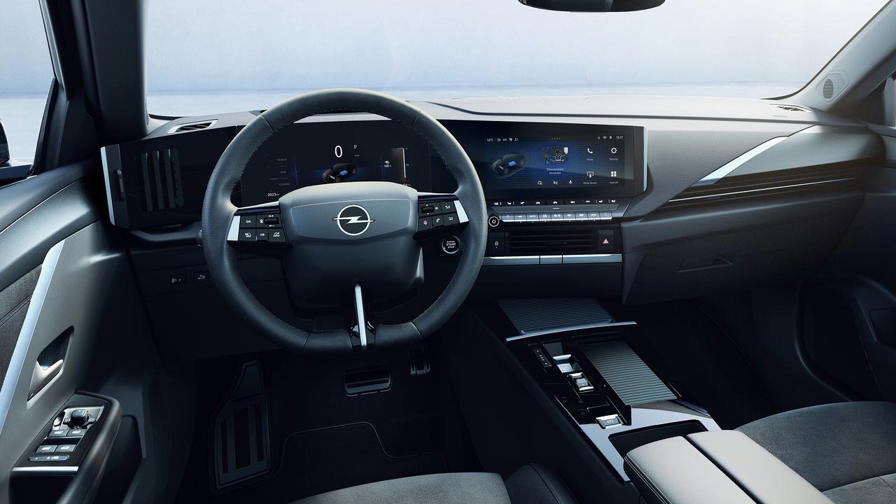Περνάμε στο εσωτερικό του νέου Opel Astra, εκεί όπου το περιβάλλον είναι ποιοτικό και σύγχρονο. Ο οδηγός περιβάλλεται από μαλακά πλαστικά, τουλάχιστον στο άνω τμήμα του ταμπλό, ενώ η συναρμολόγηση δείχνει ιδιαίτερα προσεγμένη. Σχετικά με τις οθόνες, έχουμε μία πίσω από το τιμόνι σε ρόλο… πίνακα οργάνων που παρέχει στον οδηγό όλες τις απαραίτητες ενδείξεις και έχει μέγεθος 10 ιντσών. Ίδιου μεγέθους είναι και η κεντρική οθόνη αφής μέσα από την οποία προσφέρονται συστήματα συνδεσιμότητας (Android Auto / Apple Carplay), κάμερα οπισθοπορείας, σύστημα πλοήγησης και άλλα. Μάλιστα, οι δύο οθόνες είναι ενσωματωμένες, με την αφής να στρέφεται ελαφρά προς την πλευρά του οδηγού και τις δύο μαζί να αποτελούν το λεγόμενο ” Pure Panel” όπως το ονομάζει η γερμανική εταιρεία. Σε επίπεδο χώρων, η καμπίνα του Opel Astra προσφέρει έξυπνες θήκες για μικροαντικείμενα στο κεντρικό τούνελ, μιας και απουσιάζει ο επιλογέας, ενώ ιδιαίτερα πρακτικές είναι και οι θήκες στις πόρτες. Στις πίσω θέσεις με αρκετές παραχωρήσεις θα βολευτούν τρεις ενήλικες, ενώ ο όγκος του χώρου αποσκευών είναι στα 352 λτ.