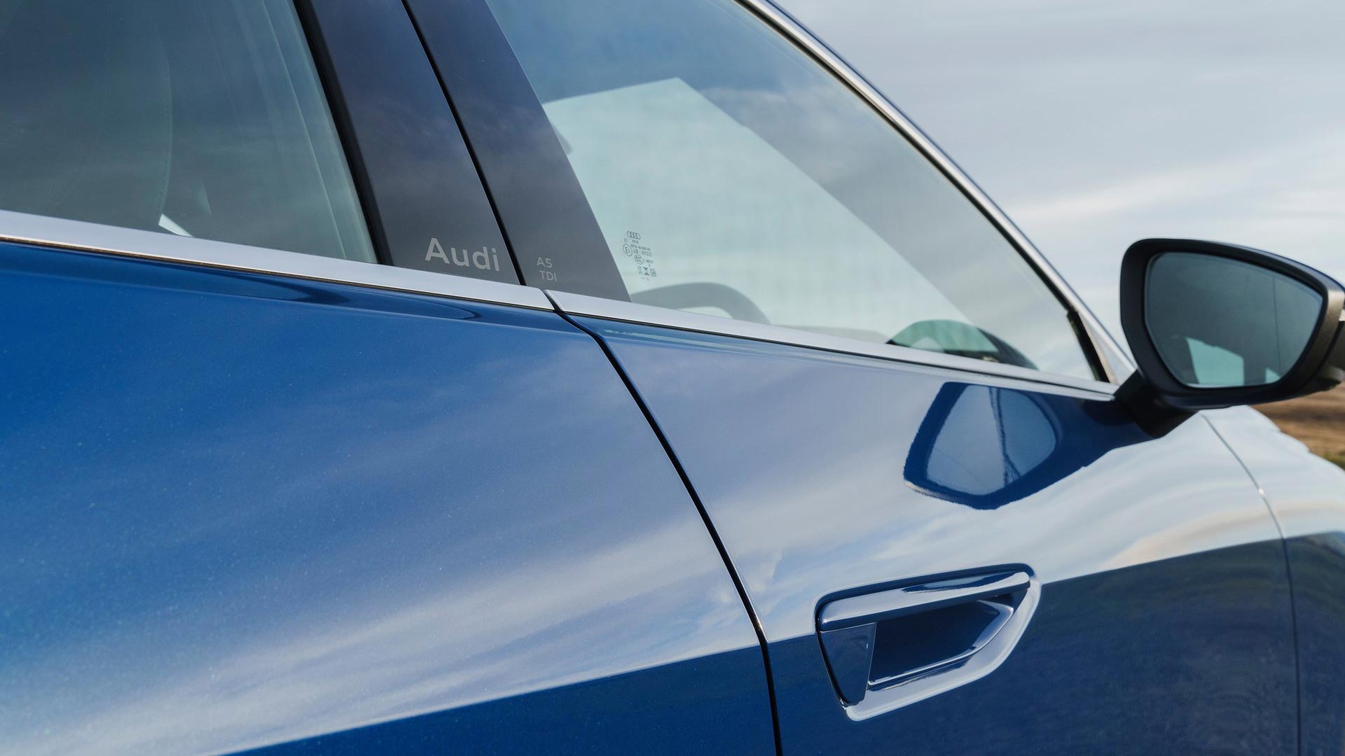 Ο αντικαταστάτης του A4 έχει τροποποιημένες αναλογίες εξωτερικά, με το μακρύ μεταξόνιο, τους μεγάλους τροχούς και το χαμηλό αμάξωμα να δημιουργούν μία πιο “sportive” φιλοσοφία. Το sedan αμάξωμα έχει στοιχεία που συναντάμε σε coupe μοντέλα, όπως το “τραβηγμένο” εσωτερικό προς τα πίσω, η έντονη κλίση του πίσω παρμπρίζ, η μικρή πόρτα του χώρου αποσκευών, αλλά και η διακριτική αεροτομή που είναι ενσωματωμένη στο αμάξωμα. Στοιχεία που ξεχωρίζουμε είναι η τραπεζοειδής μάσκα στο εμπρός τμήμα, τα έντονα “νεύρα” στο καπό και οι χειρολαβές που είναι “χωνευτές” στις πόρτες. Βέβαια, δεν γίνεται να μην εντυπωσιαστεί κανείς από τα φωτιστικά σώματα. Τα εμπρός LED σώματα μπορούν να διαφοροποιηθούν ως προς την σχεδίαση, με τον οδηγό να μπορεί να επιλέξει ένα από τα 8 διαθέσιμα μοτίβα. Άκρως εντυπωσιακά είναι και τα πίσω σώματα, τα οποία ενώνονται με μία LED λωρίδα και εντυπωσιάζουν το βράδυ. Αναφορικά με τις διαστάσεις, το επιβλητικό sedan έχει μήκος που αγγίζει τα 4.829 χλστ., πλάτος στα 1.860 και ύψος στα 1.444 χλστ. Οι δε ζάντες αλουμινίου στην S-Line έκδοση εξοπλισμού της δοκιμής, έχουν μέγεθος 19 ιντσών με ελαστικά 245/35 (διατίθεται με τροχούς από 17 έως 20 ίντσες).