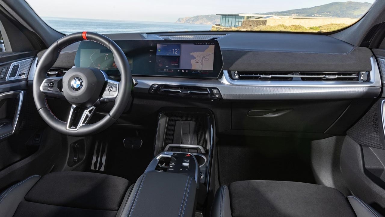 Και μιας και φτάσαμε στο εσωτερικό, να πούμε πως και εδώ οι διαφοροποιήσεις σε σχέση με τη θερμική Χ2 είναι ελάχιστες και η επιρροή από την X1 έντονη. Το μεγάλο πάνες με τις δύο οθόνες κυριαρχεί στο ταμπλό. Η μία οθόνη 10,25 ιντσών είναι για τον πίνακα πληροφοριών του οδηγού και η άλλη 10,7 ιντσών για το σύστημα πολυμέσων με το ολοκαίνουργιο iDrive 9 πλέον να τρέχει… τις λειτουργίες. Η ποιότητα και η συναρμογή είναι υπεράνω κριτικής, ενώ μου έκανε εντύπωση η όλη ατμόσφαιρα που κάνει την παραμονή σου στην καμπίνα μία νέα “εμπειρία” που όμοιά της δεν έχεις συναντήσει σε αυτοκίνητο. Ηχομόνωση κορυφαία, ατμοσφαιρικός φωτισμός, αψεγάδιαστος ήχος και υλικά μοναδικά, καθιστούν την παραμονή σου σε αυτό ιδιαίτερη.