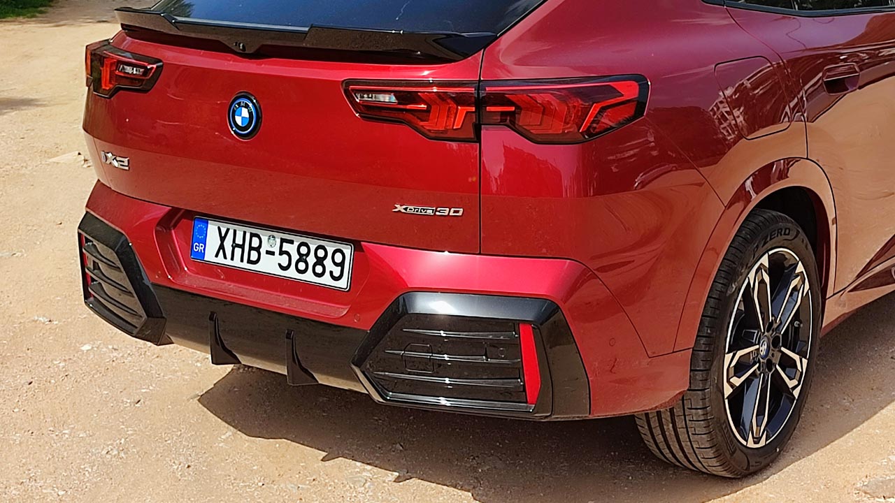 Το αυτοκίνητο δεν διαφοροποιείται αισθητικά από την αντίστοιχη θερμική του έκδοση. Η εμπρός μάσκα είναι φυσικά κλειστή, ενώ τα LED φώτα και το έντονο και αιχμηρό ανάγλυφο του αμαξώματος είναι τα βασικά στοιχεία της εξωτερικής σχεδίασης. Ειδοποιός διαφορά από όσα γνωρίζαμε μέχρι σήμερα για τα μοντέλα της BMW τα πίσω φώτα, τα οποία πλέον δεν είναι σχεδίασης τύπου “L”. Στις διαστάσεις τώρα, το μήκος της iX2 είναι 4.554 mm, το πλάτος 1.845 mm και το ύψος τα 1.590 mm. Επιπλέον, το μακρύτερο μεταξόνιο σε σχέση με την πρώτη γενιά Χ2, αλλά και τα φαρδύτερα μετατρόχια, έχουν αυξήσει την ευρυχωρία τόσο στα καθίσματα των επιβατών όσο και στο πορτμπαγκάζ. Η χωρητικότητα του τελευταίου ξεκινά από τα 525 λίτρα και φτάνει στα 1.400 με την αναδίπλωση των καθισμάτων πίσω.