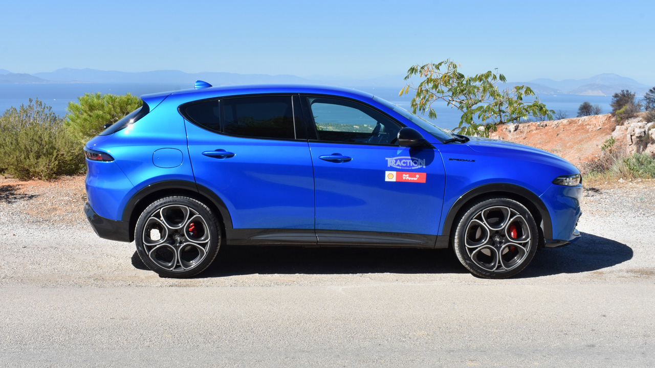 Κάτω από το καπό της συγκεκριμένης έκδοσης της Alfa Romeo Tonale, βρίσκεται ένας 4κύλινδρος βενζινοκινητήρας 1.464 κ.εκ, που λειτουργεί σε κύκλο Miller και έχει διπλό μεταβλητό χρονισμό βαλβίδων. Το υβριδικό σύστημα είναι 48βολτο και επιτρέπει στην Tonale να ξεκινά και να κινείται με χαμηλή ταχύτητα εντελώς ηλεκτρικά. Το καλό σε αυτή την έκδοση είναι το turbo μεταβλητής γεωμετρίας, το οποίο αλλάζει αναλόγως των αναγκών αναπνοής του μοτέρ. Η απόδοση φτάνει στα 160 άλογα και η ροπή παραμένει 240 Nm από τις 1.500 σ.α.λ. Οι επιδόσεις που χαρίζει το μοτέρ είναι πολύ καλές, καθώς για το 0-100 χλμ./ώρα 8,8 δλ. ενώ η τελική της ταχύτητα είναι στα 210 χλμ./ώρα. Η επίσημη μέση κατανάλωσή της είναι στα 6,3 λίτρα/100 χλμ. ενώ εμείς στην πράξη είδαμε 7,5 λίτρα/100 χλμ. Βέβαια σε αστικό περιβάλλον, το υβριδικό σύστημα παίζει εντός έδρας και μπορείς να δεις ακόμη και τιμές κατανάλωσης κάτω από τα 6,0 λίτρα/100 χλμ. Φυσικά και σε αυτή την Alfa Romeo συναντάμε τον περιστροφικό διακόπτη επιλογής οδηγικού προφίλ DNA (Dynamic, Natural και Advance Efficieny). Στο Dynamic η απόκριση του γκαζιού είναι εξαιρετική, το τιμόνι με σωστή πληροφόρηση και βάρος και τα μεγάλα παντλς αλουμινίου για τις αλλαγές σχέσεων του κιβωτίου διπλού συμπλέκτη, αποκτούν λόγο ύπαρξης.