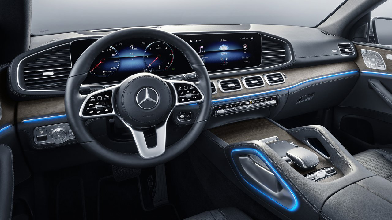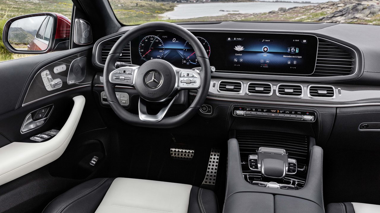 Περνώντας στο εσωτερικό της Mercedes-Benz GLE Coupe το περιβάλλον είναι πραγματικά αψεγάδιαστο και υπερπολυτελές. Σε όποιο σημείο κι αν κοιτάξουν οι επιβάτες, βλέπουν κορυφαίας ποιότητας υλικά, τα οποία είναι μαλακά στην υφή. Κορυφαία είναι και η συναρμολόγηση, εξασφαλίζοντας μηδενικούς κραδασμούς. Σε τεχνολογικό επίπεδο, δύο οθόνες αποτελούν το γνωστό μας πλέον infotainment MBUX (Mercedes-Benz User Experience). Η μία βρίσκεται πίσω από το τιμόνι και το μέγεθός της αγγίζει τις 12,3 ίντσες, ενώ ακριβώς δίπλα της βρίσκεται και η δεύτερη ίδιου μεγέθους, η οποία είναι αφής. Μέσω αυτής ελέγχονται όλα τα συστήματα, όπως η πλοήγηση και η προβολή της κάμερας 360 μοιρών. Ασφαλώς δεν απουσιάζουν και οι εφαρμογές συνδεσιμότητας Android Auto και Apple CarPlay. Στην περίπτωση του αυτοκινήτου της δοκιμής, δεν θα μπορούσαμε να μην αναφερθούμε στην πανοραμική ηλιοροφή που προσφέρει άπλετο φως στην καμπίνα, στα αεριζόμενα/θερμαινόμενα καθίσματα, αλλά και το ηλεκτρονικά ρυθμιζόμενο τιμόνι.