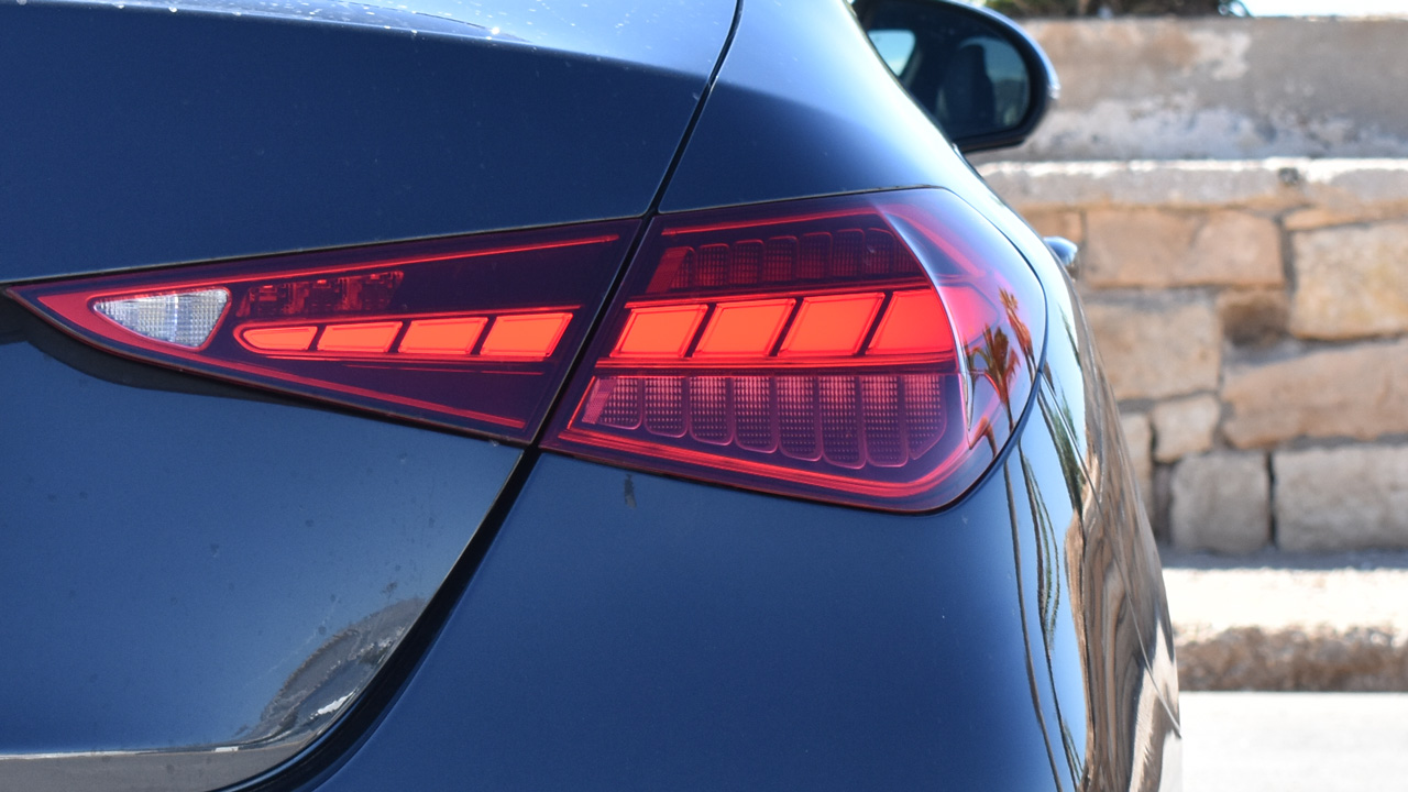 Περνώντας στις διαστάσεις της νέας C-Class, το μήκος της σεντάν έκδοσης που δοκιμάζουμε εδώ είναι στα 4.751 χλστ. (4.686 χλστ. ήταν η προηγούμενη C-Class), ενώ πλάτος και ύψος είναι στα 2.033 χλστ. (με τους εξωτερικούς καθρέφτες) και 1.438 χλστ. αντίστοιχα. Το μεταξόνιο του αυτοκινήτου είναι στα 2.865 χλστ. (+25 χλστ. από το μοντέλο που αντικαθιστά).