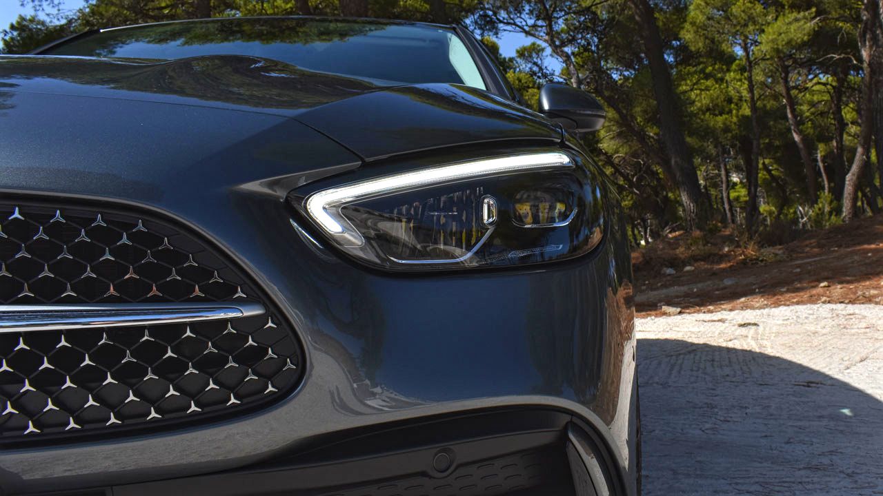 Ξεκινώντας από την εξωτερική εμφάνιση, οι σχεδιαστές της γερμανικής μάρκας έχουν καταφέρει να πάρουν την φιλοσοφία της S-Class και να την μεταφέρουν στη μικρότερη C-Class με τρόπο ιδανικό, χωρίς να χάνει σε καμία περίπτωση από την αίγλη της. Στο εμπρός μέρος κυριαρχεί παραδοσιακά η μεγάλη, κυψελώδης μάσκα με το αστέρι στο κέντρο της, ενώ ο προφυλακτήρας έχει ένα μεγάλο άνοιγμα που εξυπηρετεί την αναπνοή του αυτοκινήτου αλλά και την αισθητική του. Τα φώτα έχουν μικρύνει ελαφρώς προκειμένου να υπηρετήσουν τις γραμμές του καπό και των φτερών εμπρός, ενώ στο πλάι δύο νεύρα… σχίζουν το αμάξωμα και καταλήγουν στο πίσω φτερό. Στο πίσω μέρος η ένταση… μειώνεται, καθώς οι γραμμές είναι πιο “ήσυχες”. Στο κάτω μέρος του προφυλακτήρα υπάρχει διαχύτης σε μαύρο χρώμα, ενώ στο πίσω καπό, υπάρχει ένα μικρό ενσωματωμένο “φρύδι” που υπηρετεί την αεροδυναμική. Μία αεροδυναμική κορυφαία για την κατηγορία, με συντελεστή οπισθέλκουσας 0,24 Cd.