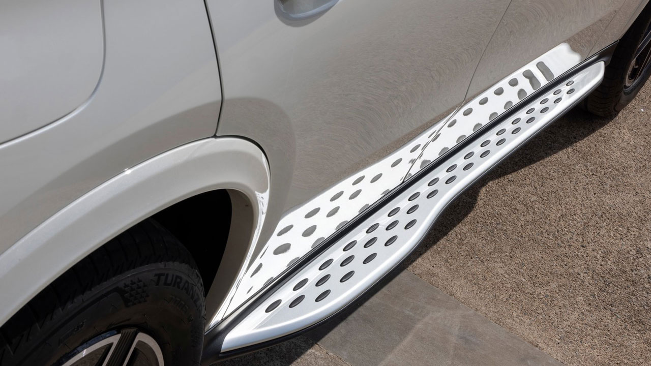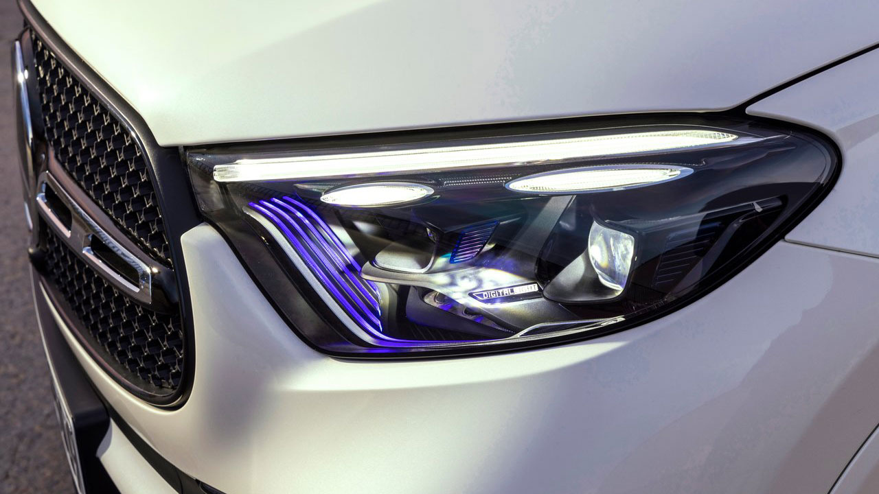 Ξεκινάμε από την εξωτερική σχεδίαση της νέας Mercedes GLC, εκεί όπου “πρωταγωνιστούν” τα κλασικά χαρακτηριστικά των SUV. Οι χρωμιωμένες ποδιές, οι ράγες οροφής και σκαλοπάτια, δημιουργούν μια ισορροπία μεταξύ κομψότητας, δυναμισμού και σκληροτράχηλου χαρακτήρα. Στα κυριότερα σημεία περιλαμβάνονται οι νέοι Full LED προβολείς, οι οποίοι συνδέονται απευθείας με τη μάσκα του ψυγείου και τονίζουν το πλάτος του οχήματος. Ένα άλλο σημαντικό χαρακτηριστικό της σχεδίασης είναι η μάσκα με περίβλημα χρωμίου στο στάνταρ εξωτερικό της έκδοσης Avantgarde. Η σχεδίαση της GLC όμως της χαρίζει και εξαιρετικό αεροδυναμικό συντελεστή. Ο ελάχιστος συντελεστής οπισθέλκουσας της GLC είναι Cd=0,29. Μια αξιοσημείωτη απόδοση για ένα SUV. Άλλες εντυπωσιακές λεπτομέρειες είναι οι μεγάλες ζάντες αλουμινίου μεγέθους 20 ιντσών, το “μυώδες” αμάξωμα με τα έντονα νεύρα στο καπό, αλλά και το λογότυπο “4MATIC” στο πίσω μέρος που μαρτυρά την ύπαρξη τετρακίνησης. Αναφορικά με τις διαστάσεις, το μήκος της Mercedes GLC αγγίζει τα 4.716 χλστ., το πλάτος τα 1.890 και το ύψος τα 1.640 χλστ.