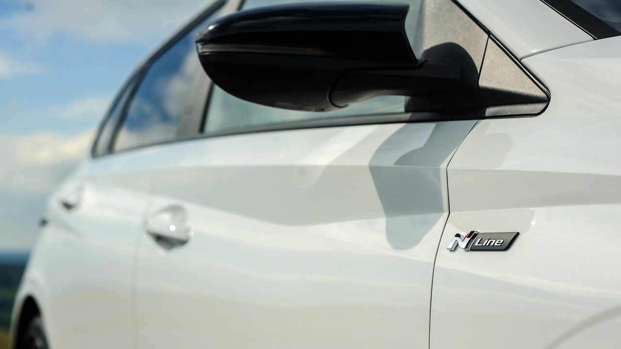 Ξεκινάμε από την εξωτερική εμφάνιση που είναι και ένα από τα δυνατά στοιχεία του αυτοκινήτου της δοκιμής, δίνοντας έμφαση στα N Line στοιχεία. Η τρίτη γενιά χαρακτηρίζεται από τη μεγάλη γρίλια στο εμπρός τμήμα και τα λεπτά LED φώτα ημέρας, ενώ στο πίσω μέρος συναντάμε φωτιστικά σώματα που “αγκαλιάζουν” το αμάξωμα και ενώνονται. H ιδιαίτερα επιθετική σχεδίαση επιτυγχάνεται με τις ζάντες μεγέθους 17 ιντσών, αλλά και την αντίθεση που δημιουργεί το λευκό αμάξωμα με το μαύρο στον ουρανό, στα καπάκια των καθρεφτών και στον διαχύτη. Μιας και αναφερθήκαμε στον διαχύτη, αξίζει να αναφερθούμε και στην διπλή απόληξη της εξάτμισης, η οποία μάλιστα προσφέρει και έναν πιο μπάσο ήχο από τις “απλές” εκδόσεις του κορεάτικου supermini. Αναφορικά με τις διαστάσεις, η τρέχουσα γενιά έχει αυξηθεί σε διαστάσεις συγκριτικά με το παρελθόν. Πιο συγκεκριμένα, πλέον το μήκος ανέρχεται στα 4.040 χλστ., το πλάτος στα 1.775 χλστ. και το ύψος είναι το μοναδικό που έχει μειωθεί φτάνοντας στα 1.450 χλστ.