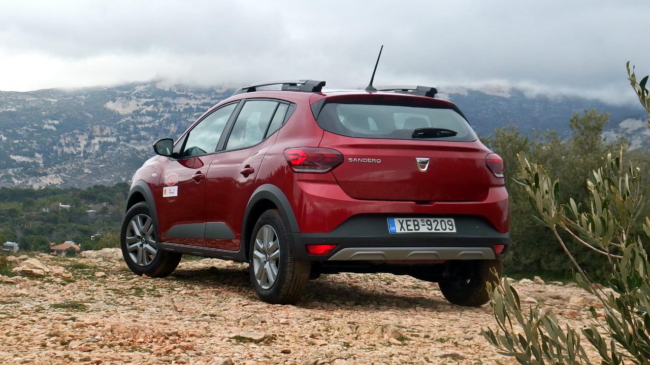 Το Dacia Sandero Stepway θέλει και καταφέρνει να είναι ένα value for money αυτοκίνητο. Αν ήταν ποδοσφαιρική ομάδα θα ήταν από αυτές που δεν ντρέπονται να παίξουν… αμυντικά για να κερδίσουν το παιχνίδι με μια εξαιρετική αντεπίθεση. Αυτό κάνει και το συγκεκριμένο μοντέλο. Παίζει αμυντικά στους περισσότερους τομείς, αλλά όταν στην συζήτηση μπαίνει το κόστος κίνησης, τότε παίρνει την μπάλα, ανοίγεται υποδειγματικά και σκοράρει! Προσέξτε τι εννοώ. Ο 1000άρης κινητήρας διπλού καυσίμου των 100 ίππων στις 4.600-5.000 σ.α.λ. και των 170 Nm ροπής από τις 2.000 έως τις 3.5000 σ.α.λ. προσφέρει 0-100 χλμ./ώρα σε 11,9 δλ. και τελική ταχύτητά 177 χλμ./ώρα την στιγμή που καταναλώνει σε πραγματικές συνθήκες 8,3 λίτρα υγραερίου/100 χλμ. (7,7 ανακοινώνει η Dacia). Δηλαδή περίπου 8,5 ευρώ/100 χλμ. Και κάπου εδώ τελειώνει η κουβέντα… για το κοινό που αναζητά το απόλυτο value for money αυτοκίνητο. Αν βάλουμε βέβαια στην εξίσωση και την βενζίνη (ρεζερβουάρ 50 λίτρων) τότε το κόστος ανεβαίνει. Το αυτοκίνητο καίει στην πράξη περί τα 6,6 λίτρα/100 χλμ. (μέση τιμή καυσίμου 1,876 ευρώ/λίτρο). Για τις εκπομπές CO2 έχουμε 130 – 135 γρ./χλμ. (βενζίνη) και 114 – 119 γρ./χλμ. (LPG) και εδώ να θυμίσω πως ως εργοστασιακό LPG κυκλοφορεί ελεύθερα στον δακτύλιο. Και φυσικά να τονίσω πως με δύο ρεζερβουάρ καυσίμου (η επιλογή γίνεται μέσω εργοστασιακού διακόπτη στο ταμπλό αριστερά από το τιμόνι) 50 λίτρων βενζίνης και 40 λίτρων LPG και μέση κατανάλωση 6,6 και 8,3 λίτρα/100 χλμ. η αυτονομία ανέρχεται στα 1.241 χλμ. (757 με βενζίνη και 484 με υγραέριο).
