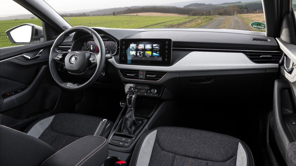 Οι πίσω θέσεις προσφέρουν αρκετό χώρο για τα πόδια και το κεφάλι – κάτι σημαντικό για οικογένεια με παιδιά – ενώ η θέση οδήγησης είναι καλή και η ορατότητα ικανοποιητική. Στον τομέα της πρακτικότητας, το Scala ενσωματώνει και λύσεις “Simply Clever” όπως θήκες για μικροαντικείμενα και ενσωματωμένο χώρο για ομπρέλα, πλευρικά στο πάνελ της πόρτας του οδηγού.