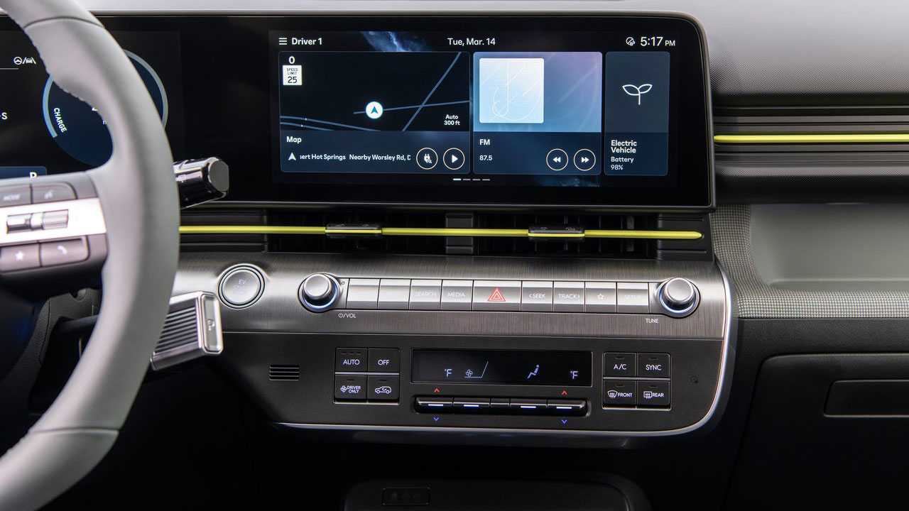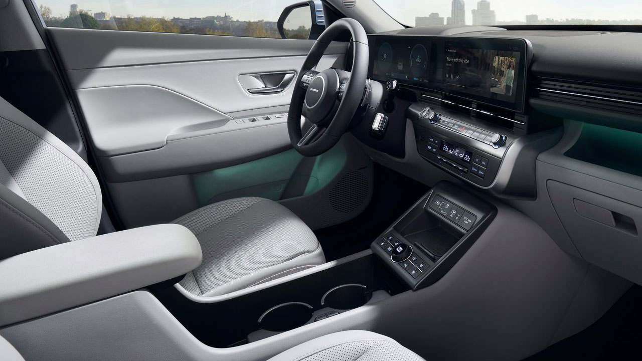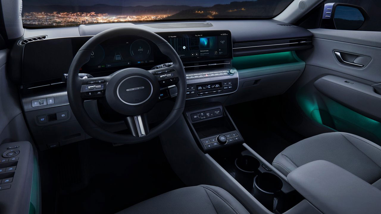 Χάρη στις αναβαθμισμένες διαστάσεις του μοντέλου, η Hyundai κατάφερε να σχεδιάσει μία μεγαλύτερη καμπίνα, με τον διαθέσιμο όγκο για τις αποσκευές να αγγίζει τα 466 λτ. Αξιοσημείωτα στοιχεία στην καμπίνα είναι το “αιωρούμενο” C-Pad, όπως ονομάζεται, το οποίο απαρτίζεται από διπλές οθόνες 12,3 ιντσών. Αυτή που βρίσκεται πίσω από το τιμόνι αναλαμβάνει ρόλο πίνακα οργάνων, παρέχοντας όλες τις απαραίτητες πληροφορίες στον οδηγό. Κάπου εδώ να αναφέρουμε ότι υπάρχει και το σύστημα “Blind View Monitor”. Μόλις ο οδηγός βγάζει φλας, ανοίγει κάμερα που προβάλλει τη νεκρή γωνία. Έτσι, γίνονται για παράδειγμα πιο ασφαλείς οι αλλαγές λωρίδας. Επιπλέον, συγκριτικά με την πρώτη γενιά, ο επιλογέας ταχυτήτων shift-by-wire έχει μεταφερθεί από την κεντρική κονσόλα στην κολόνα του τιμονιού, γεγονός που επιτρέπει περισσότερο χώρο αποθήκευσης στην κονσόλα.