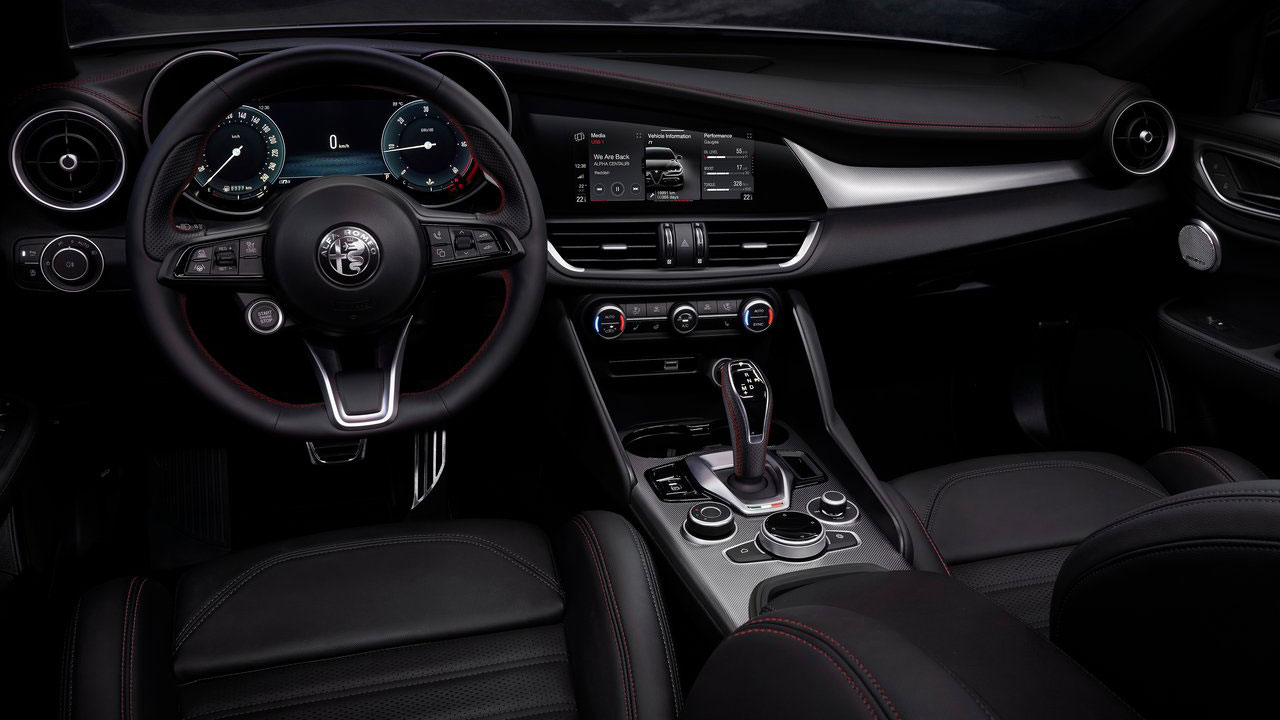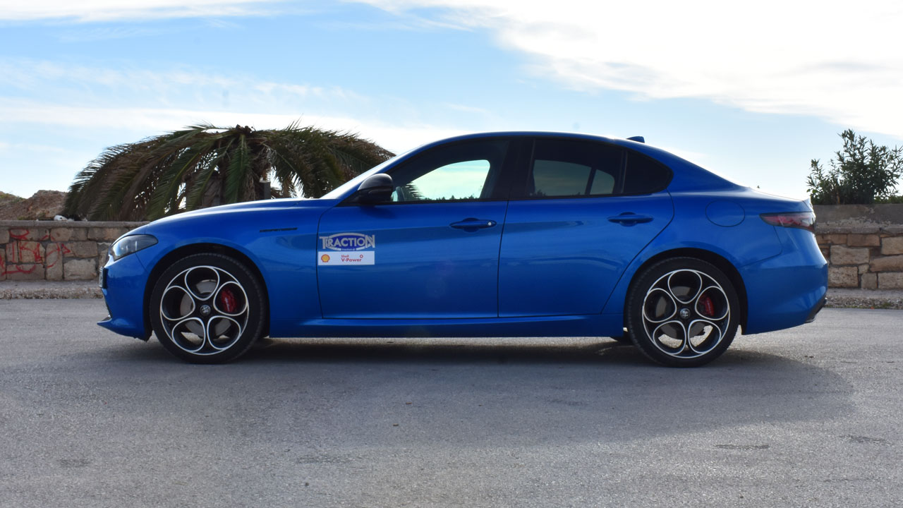 Όπως αναφέραμε και στον τίτλο, η έκδοση της δοκιμής ήταν αυτή με τους 280 ίππους, δηλαδή η ισχυρότερη, με εξαίρεση ασφαλώς την κορυφαία Quadrifoglio. Κάτω από το καπό της κρύβεται ένα τετρακύλινδρο, υπερτροφοδοτούμενο μοτέρ χωρητικότητας 1.995 κ.εκ. Η ισχύς αγγίζει τους 280 ίππους στις 5.250 σ.α.λ. και η μέγιστη ροπή των 400 Nm εμφανίζεται από τις 2.250 σ.α.λ. Η κίνηση περνά και στους τέσσερις τροχούς μέσω αυτόματου σασμάν 8 σχέσεων με μετατροπέα ροπής. Όσο για τις επιδόσεις, ενδεικτικά να αναφέρουμε πως το αμάξωμα που ξεπερνά οριακά τα 1.600 κιλά, επιταχύνει στα 0-100 χλμ./ώρα εντός 5,2 δλ. και η τελική ταχύτητα φτάνει στα 240 χλμ./ώρα. Πάμε και στην κατανάλωση, η οποία όπως είναι λογικό για κάθε τετρακίνητο μοντέλο τέτοιας ισχύος δεν είναι και από τα “δυνατά χαρτιά”. Στη διάρκεια της δοκιμής, κινούμενοι κυρίως με το μεσαίο πρόγραμμα οδήγησης, η μέση τιμή διαμορφώθηκε στα 10,6 λτ./100 χλμ., με την εταιρεία να ανακοινώνει 8,0 λτ./100 χλμ. βάσει WLTP.