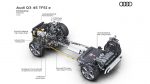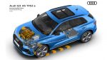 Φυσικά για να γίνει αυτό ο οδηγός πρέπει να επιλέξει την λειτουργία EV. Το αυτοκίνητο διαθέτει επίσης τη λειτουργία Auto Hybrid (ο εγκέφαλος αποφασίζει πως θα συνεργαστούν τα δύο μοτέρ), ενώ υπάρχει επίσης η λειτουργία «Battery Hold» (διατηρεί την ενέργεια της μπαταρίας) και το «Battery Charge» (ο θερμικός κινητήρας ως γεννήτρια φορτίζει την μπαταρία). Η Audi κάνει λόγο για μέση κατανάλωση κοντά στα 2 λίτρα/100 χλμ. ενώ εμείς στην πράξη κινηθήκαμε με 4,4 λίτρα/100 χλμ. Φυσικά αν το αυτοκίνητο δεν έχει μπαταρία για το ηλεκτρικό μοτέρ και επιλέξεις να κινείσαι με το θερμικό μοτέρ αποκλειστικά αλλά και να φορτίζεις και την μπαταρία, τότε η κατανάλωση μπορεί και να διπλασιαστεί. Φυσικά η ανάκτηση ενέργειας είναι παρούσα και εδώ. Η µπαταρία έχει χωρητικότητα 13,0 kWh και βρίσκεται κάτω από τα πίσω καθίσµατα και για την φόρτισή της σε απλή οικιακή πρίζα απαιτούνται περίπου 8 ώρες (σε wallbox προφανώς και ο χρόνος μειώνεται στην μία ώρα και κάτι).