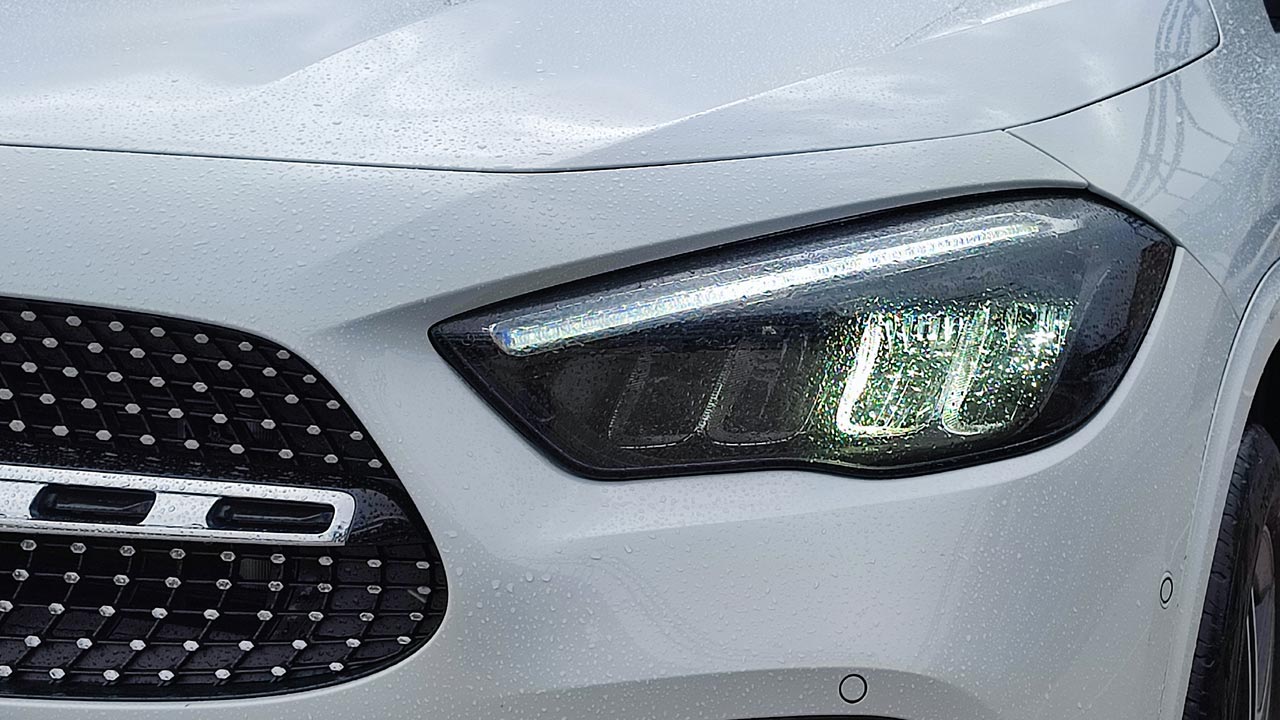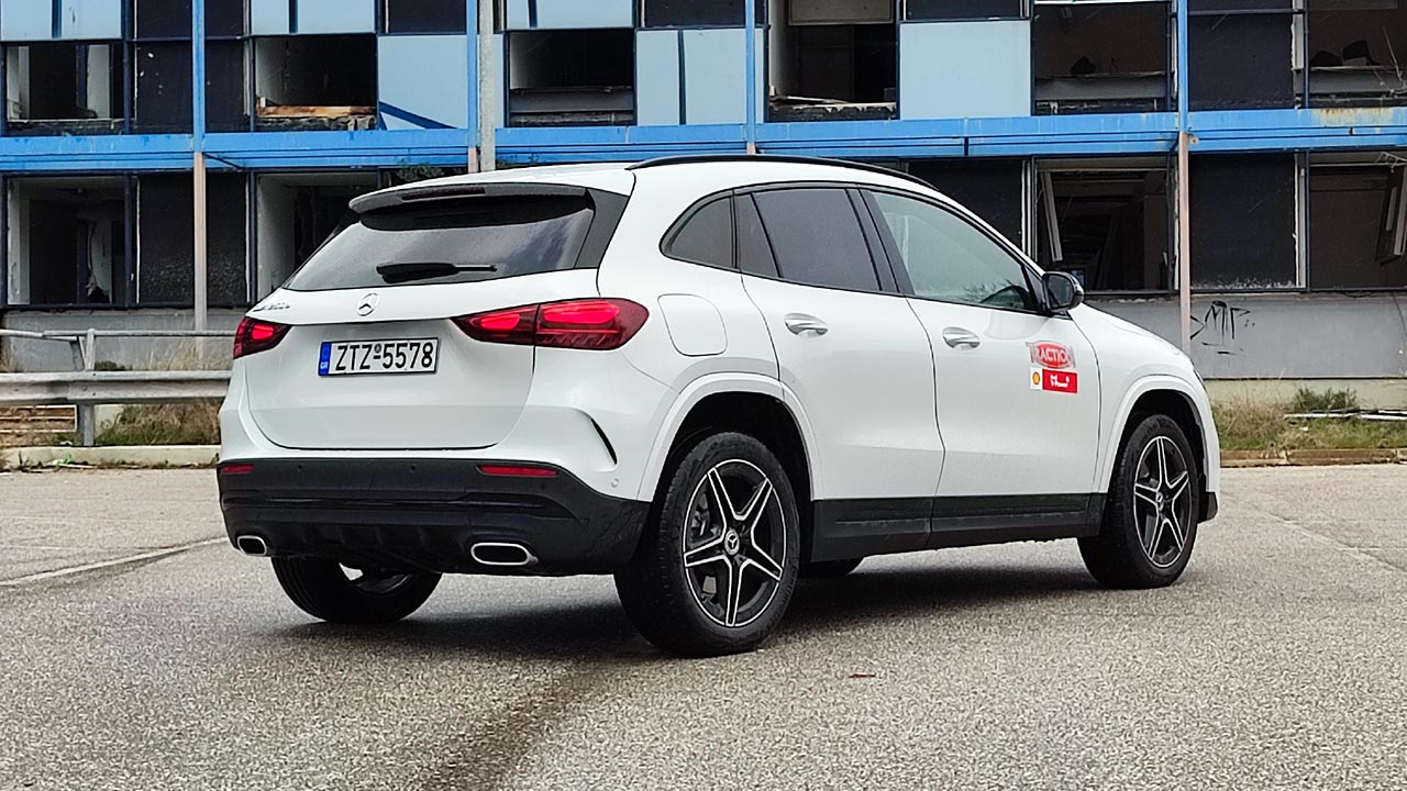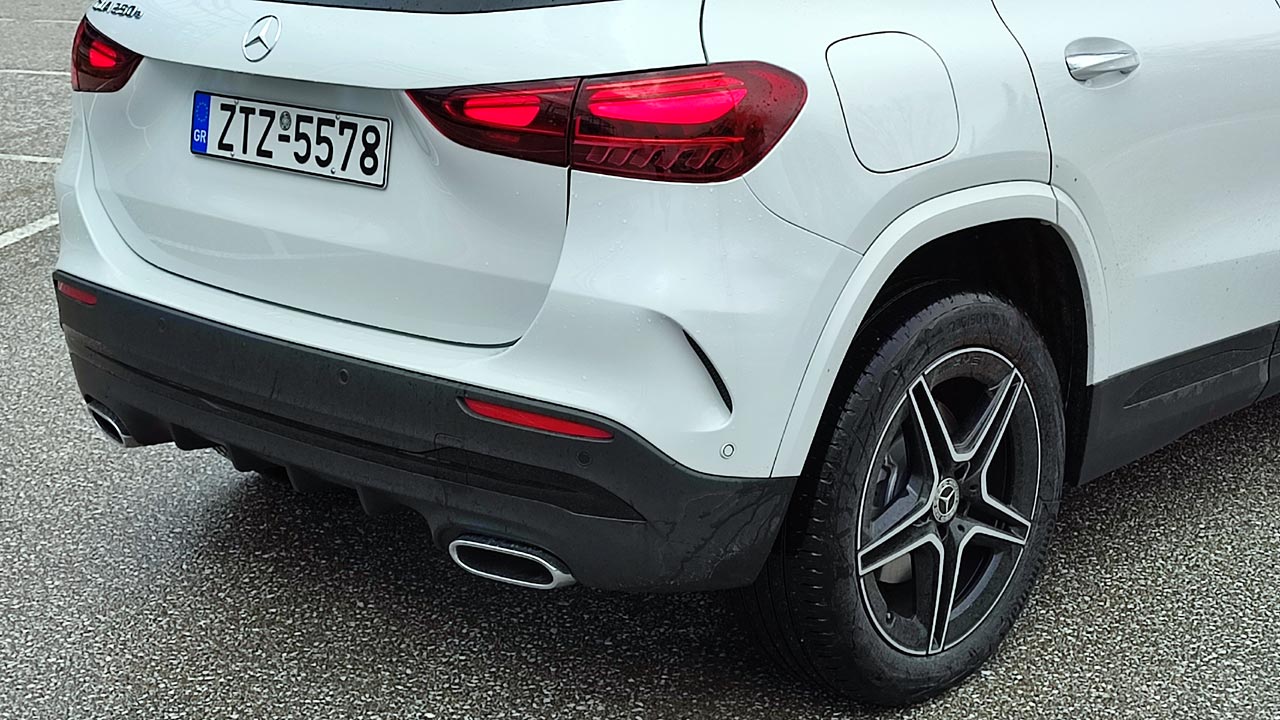 Σχεδιαστικά η GLA στην ανανεωμένη εκδοχή της, διατηρεί την αρχιτεκτονική της, ενώ διαθέτει αισθητικές διαφορές. Το εμπρός μέρος είναι επιβλητικό όπως αρμόζει σε μια γνήσια Mercedes. Η μάσκα και τα φωτιστικά σώματα ευθύνονται κυρίως για αυτό, καθώς διαθέτουν επιθετικό σχεδιασμό, ενώ πλαισιώνονται από το νέο προφυλακτήρα με τους μεγάλους αεραγωγούς και τα powerdomes στο καπό του κινητήρα (τα δύο παράλληλα “νεύρα” που διατρέχουν το καπό). Προσθέτοντας στα παραπάνω στοιχεία τους μεγάλους τροχούς, τους έντονους ώμους του αμαξώματος πάνω από τους θόλους των τροχών και την κεκλιμένη γραμμή οροφής στο πίσω μέρος, τότε έχουμε ένα ολοκληρωμένο παζλ αισθητικής υπεροχής! Πάνω από όλα όμως η Mercedes GLA είναι ένα SUV και αυτό φροντίζει να το δείχνει διαρκώς. Το επιβλητικό της παράστημα με το ύψος της να φτάνει πλέον τα 1.613, οι κοντοί πρόβολοι μπροστά και πίσω και οι περιμετρικές, προστατευτικές επενδύσεις φροντίζουν για αυτό. Ειδικότερα, το μήκος της νέας GLA ανέρχεται στα 4.410 χλστ. (-14 χλστ. σε σχέση με πριν), στο ύψος της αναφερθήκαμε πιο πάνω, ενώ το πλάτος της ανέρχεται στα 1.804 χλστ. χωρίς τους καθρέπτες (αυξημένο κατά 30 χλστ.). Την ίδια στιγμή μεγαλύτερο παρουσιάζεται και το μεταξόνιο, καθώς είναι αυξημένο κατά 30 χλστ. στα 2.729 χλστ. (στοιχείο που ευνοεί και τους χώρους καμπίνας όπως θα δούμε πιο κάτω). Φυσικά η plug-in hybrid έκδοσή της, δεν έχει να επιδείξει κάποιες αλλαγές σχεδιαστικά, πέραν την προσθήκης του ειδικού σήματος EQ Power αλλά και του “e” δίπλα στο 250.