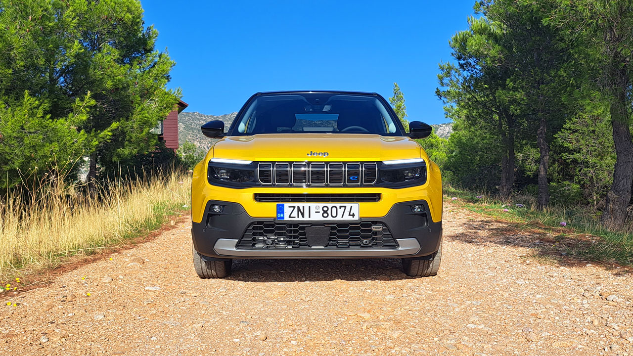 Δεδομένου ότι πρόκειται για ένα εντελώς νέο μοντέλο, δεν γίνεται να μην ξεκινήσουμε από την εξωτερική εμφάνιση, η οποία μάλιστα διαπιστώσαμε πως ήταν ελκυστική βάσει των αντιδράσεων περαστικών στη διάρκεια της δοκιμής. Tο πρώτο ηλεκτρικό μοντέλο της εταιρείας διακρίνεται για τα λεπτά φωτιστικά σώματα εμπρός, ανάμεσα στα οποία τοποθετείται η γνωστή μάσκα που αποτελεί εδώ και χρόνια σήμα κατατεθέν της εταιρείας. Δύο έντονα νεύρα διατρέχουν το καπό, ενώ δεν απουσιάζει και το “e” που μαρτυρά την εξηλεκτρισμένη φύση του μοντέλου. Στο πίσω τμήμα, συναντάμε επίσης μικρής επιφάνειας LED σώματα και το λογότυπο της Jeep με μπλε χρώμα. Αξιοσημείωτο είναι να αναφέρουμε ότι το κάτω τμήμα του αμαξώματος φέρει πλαστικές επενδύσεις για μέγιστη προστασία, ενώ η αυξημένη απόσταση από το έδαφος δημιουργεί καλές “off-road” τιμές (προσέγγισης, διαφυγής, ράμπας) στις οποίες θα αναφερθούμε εκτενώς στη συνέχεια. Όσο για το μήκος του αμαξώματος, αγγίζει τα μόλις 4,08 μέτρα, 16 εκατοστά πιο μικρό από το Renegade. Το δε πλάτος φτάνει τα 1.776 χλστ. και το ύψος 1.528.