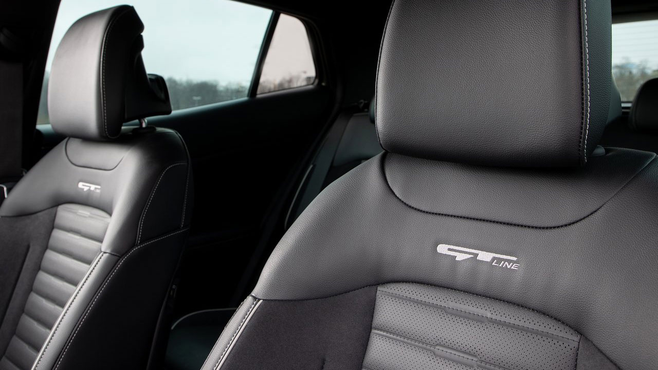 Επιπλέον ιδιαίτερα στοιχεία του εσωτερικού είναι το σπορ δερμάτινο τιμόνι του GT-Line, σχεδίασης “flat bottom”, τα αλουμινένια πεντάλ, η μαύρη επένδυση της οροφής, αλλά και τα καθίσματα με το χαρακτηριστικό κεντημένο λογότυπο του GT-Line. Μέρος του πλούσιου εξοπλισμού που χρήζουν αναφοράς είναι ο τα θερμαινόμενα καθίσματα και το θερμαινόμενο τιμόνι, ο ατμοσφαιρικός φωτισμός τη νύχτα, αλλά και το πλήρως αυτόματο σύστημα κλιματισμού τριών ζωνών. Όσο για την ποιότητα, αξίζει να αναφέρουμε πως στο μεγαλύτερο μέρος των επιφανειών της καμπίνας συναντάμε μαλακές στην υφή επιφάνειες. Μόνο χαμηλότερα θα συναντήσει κανείς πιο σκληρά πλαστικά.