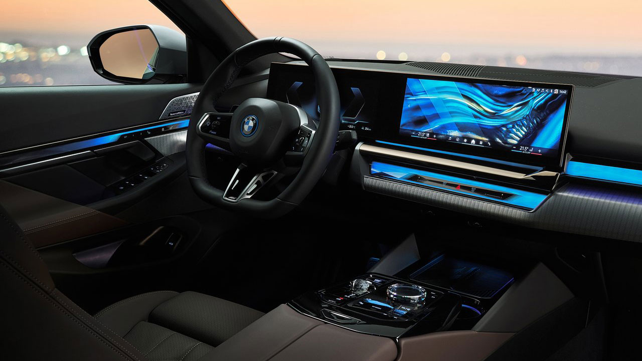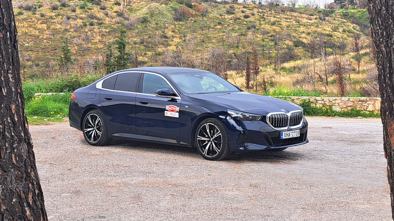 Η νέα BMW Σειρά 5 Sedan είναι το πρώτο μοντέλο της μάρκας που διαθέτει ένα πλήρως vegan εσωτερικό. Οι επιφάνειες των καθισμάτων, το ταμπλό, τα πάνελ των θυρών, καθώς και το τιμόνι, μοιάζουν να έχουν κατασκευαστεί από δέρμα. Στην πράξη, η γερμανική λιμουζίνα θα εντυπωσιάσει με την ποιότητα και την συναρμογή της… τον πλέον απαιτητικό οδηγό. Αναφορικά με το ψηφιακό περιβάλλον, ντεμπούτο στην BMW Σειρά 5 κάνει το λογισμικό BMW Operating System 8.5, το οποίο παρέχει ευρεία γκάμα ψηφιακού περιεχομένου, βελτιωμένες πληροφορίες για σημεία φόρτισης ηλεκτρικών οχημάτων, αλλά και ένα καινοτόμο σύστημα gaming στο αυτοκίνητο. Το πλήρως ψηφιακό περιβάλλον αποτελείται από μία οθόνη 12,3 ιντσών πίσω από το τιμόνι και μία οθόνη αφής 14,9 ιντσών για τον έλεγχο του infotainment. Λίγο πιο πάνω βρίσκεται και το head-up display, με προβολή χρήσιμων ενδείξεων απευθείας στον παρμπρίζ. Αξιοσημείωτη είναι και η βραδινή εμπειρία πίσω από το τιμόνι της BMW Σειρά 5, με τον φωτισμό να εναλλάσσεται ανάλογα με το πρόγραμμα οδήγησης που επιλέγει ο χρήστης. Στην περίπτωση του αυτοκινήτου της δοκιμής, δεν γίνεται να μην αναφερθούμε και στην πανοραμική οροφή που χάριζε άπλετο φως στην εντυπωσιακή καμπίνα.