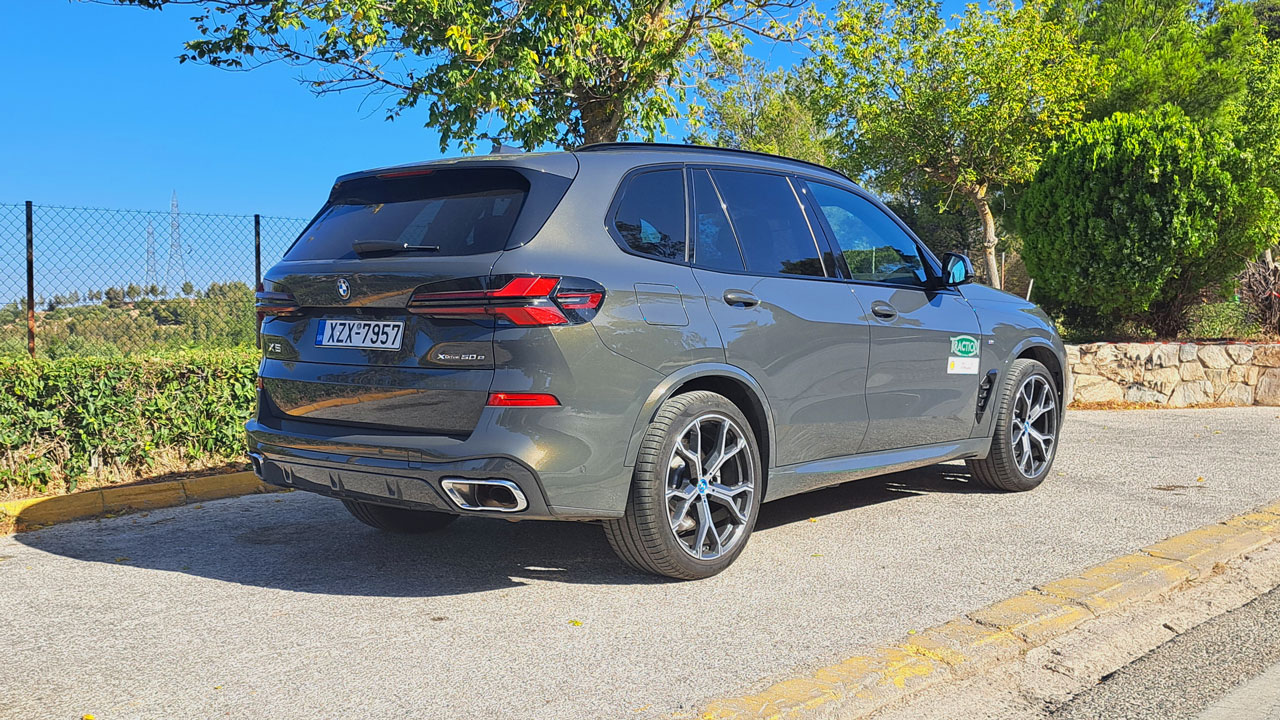 Πίσω από το τιμόνι της BMW X5 xDrive50e τα χιλιόμετρα “καταπίνονται” χωρίς να αντιλαμβάνεσαι το παραμικρό. Η αερανάρτηση λειτουργεί υποδειγματικά, ακόμα και με τις ζάντες 21 ιντσών φιλτράρει τις ανωμαλίες χωρίς ταυτόχρονα να δημιουργεί ταλαντώσεις στο ομολογουμένως βαρύ αμάξωμα. Μάλιστα, είναι σε θέση να ρυθμιστεί αυτόματα, ώστε το αυτοκίνητο να έχει πάντα την κατάλληλη συμπεριφορά, ανάλογα με την ταχύτητα ή το φορτίου που “κουβαλά”. Το μέγεθος του αμαξώματος συνηθίζεται εύκολα, λόγω της καλής περιφερειακής ορατότητας και της κάμερας 360 μοιρών. Ωστόσο δεν θα λέγαμε όχι και σε ένα σύστημα τετραδιεύθυνσης που θα μείωνε σημαντικά τον κύκλο στροφής. Το υβριδικό σύστημα από την άλλη προσφέρει άπλετη δύναμη και στο “Sport” πρόγραμμα οδήγησης το θερμικό μοτέρ ανταποκρίνεται ακαριαία. Πεντάλ στο πάτωμα, ταχύτατα “πέφτει” δύο σχέσεις κάτω το σβέλτο Steptronic… και ξεκινά η απογείωση! Θετικές εντυπώσεις αφήνει και το τιμόνι, το οποίο προσφέρει ικανοποιητικό “feedback” στον χειριστή, ενώ τα φρένα ακόμα και σε παρατεταμένη καταπόνηση έβγαλαν εις πέρας το δύσκολο έργο τους.