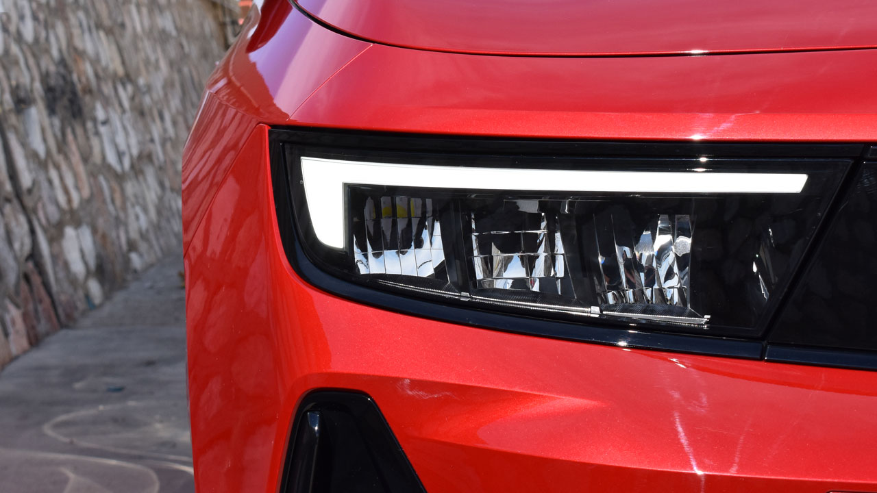 Ξεκινώντας από την εξωτερική του εμφάνιση, το νέο Opel Astra καταφέρνει να μην περνά απαρατήρητο στον δρόμο. Κάτι τέτοιο επιτυγχάνεται κυρίως με το επιβλητικό εμπρός τμήμα του, το οποίο “προσαρμόζεται” στη νέα σχεδιαστική φιλοσοφία που απαντά στο όνομα “Opel Visor”. Πρόκειται για την σκουρόχρωμη μάσκα, που ενσωματώνει το μαύρο σήμα της εταιρείας. Στα άκρα υπάρχουν οι πολύ λεπτοί προβολείς, Intelli-Lux LED, με 168 στοιχεία LED που προσαρμόζουν αυτόματα τον φωτισμό. Εντυπωσιακό είναι και το καπό, με το κεντρικό “νεύρο” να θυμίζει κάτι από το παρελθόν της εταιρείας. Η δυναμική εικόνα συνεχίζεται με την διχρωμία του αμαξώματος, τις ζάντες 18 ιντσών της πλούσιας έκδοσης δοκιμής “GS Line”, αλλά και την διακριτική, ενσωματωμένη στο αμάξωμα αεροτομή στο πίσω μέρος που φέρει και το κάθετο φως επιβράδυνσης, όμορφη λεπτομέρεια, ειδικά τη νύχτα. Η σχεδίαση του πίσω μέρους ολοκληρώνεται με τα επίσης λεπτά LED σώματα και το όνομα ASTRA που απεικονίζεται ολογράφως με σκούρα γράμματα.