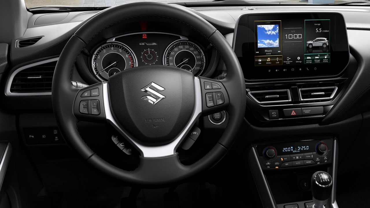 Αρχικά, αξίζει να αναφέρουμε το ανανεωμένο μοντέλο έρχεται να προσαρμοστεί στα νέα δεδομένα της Ε.Ε. όσον αφορά στα υποχρεωτικά συστήματα ασφαλείας. Ενδεικτικά, αυτός είναι και ο λόγος που έχει εγκατασταθεί αισθητήρας ανίχνευσης κούρασης ή απόσπασης προσοχής ακριβώς πάνω από την κεντρική οθόνη αφής. Πάμε, όμως, να γνωρίσουμε ενδελεχώς το Suzuki S-Cross που εξοπλίζεται με τετρακίνηση και πλούσιο πακέτο εξοπλισμού GLX.