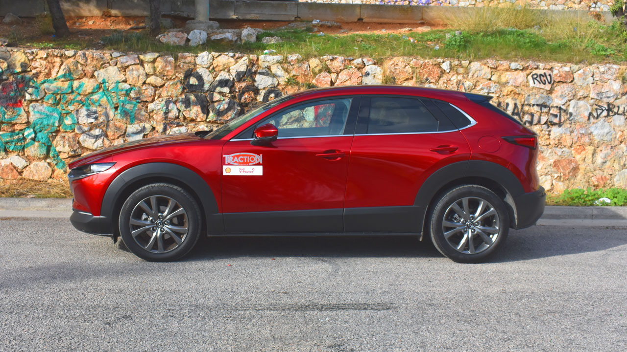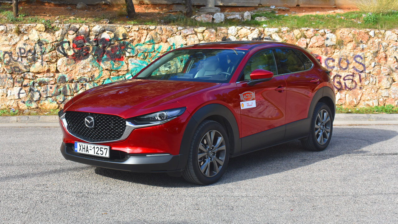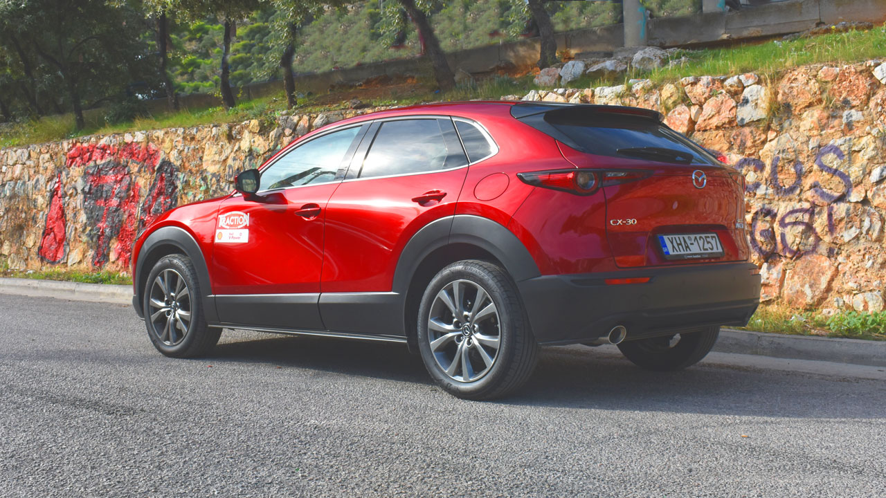 Πίσω από το τιμόνι του Mazda CX-30, ο οδηγός θα βιώσει από την αρχή τον εκλεπτυσμένο χαρακτήρα του μοντέλου. Η εργονομία είναι εξαιρετική, το ίδιο και η ορατότητα, ενώ η κορυφαία ηχομόνωση “φιλτράρει” αποτελεσματικά τους εξωτερικούς θορύβους. Κινητήρας και κιβώτιο συνδυάζονται αρμονικά, με τον πρώτο να την ευστροφία του καθώς αποδίδει δυνατά ακόμη και μετά τις 4.000 σ.α.λ. και το δεύτερο να αλλάζει ομαλά τις ταχύτητες. Στην περιοχή του επιλογέα βρίσκεται και ένας διακόπτης, μέσω του οποίου ενεργοποιείται το “Sport Mode”, το οποίο διατηρεί αισθητά υψηλότερα τις στροφές λειτουργίας. Ασφαλώς, δεν απουσιάζουν τα διακριτικά paddles για τις στιγμές που ο οδηγός θα θελήσει να πάρει την κατάσταση… στα χέρια του. Το τριάκτινο τιμόνι διακρίνεται για την εξαιρετική πληροφόρηση που παρέχει στον οδηγό, αν και ενδεχομένως να το βρείτε λίγο βαρύ σε αίσθηση συγκριτικά με άλλα σύγχρονα αυτοκίνητα. Βαριά είναι και η αίσθηση του πεντάλ γκαζιού. Τέλος, η ανάρτηση είναι όσο σφικτή πρέπει ώστε να αποσβένει τις ανωμαλίες του οδοστρώματος και να εξαλείφει τις έντονες κλίσεις του αμαξώματος όταν ο ρυθμός οδήγησης γίνεται ταχύτερος.
