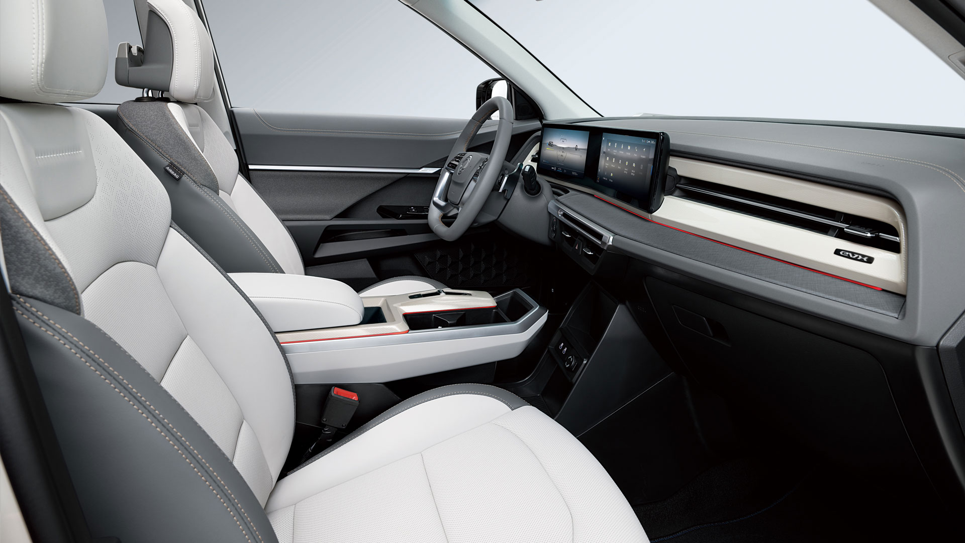 Περνώντας στο εσωτερικό του KGM Torres EVX, η καμπίνα προσφέρει άνεση και όλες τις σύγχρονες τεχνολογίες που αρμόζουν σε ένα D-SUV του σήμερα. Σε ψηφιακό επίπεδο, διαθέτει δύο οθόνες 12,3 ιντσών τοποθετημένες οριζόντια στο ταμπλό, εκ των οποίων η μία έχει τον ρόλο του πίνακα οργάνων και η άλλη το σύστημα infotainment με υποστήριξη Apple CarPlay και Android Auto. Η πρακτικότητα του εσωτερικού θα καλύψει με το παραπάνω τις ανάγκες μίας οικογένειας. Ο χώρος αποσκευών αγγίζει τα 839 λίτρα, ενώ με την αναδίπλωση των πίσω καθισμάτων ο όγκος αυτός φτάνει τα 1.662 λίτρα. Επιπλέον, το όχημα ενσωματώνει λειτουργία Vehicle-to-Load (V2L) ισχύος 3,3 kW, η οποία επιτρέπει τη χρήση της μπαταρίας του αυτοκινήτου για την τροφοδοσία εξωτερικών ηλεκτρικών συσκευών, ενώ ο εξοπλισμός περιλαμβάνει ακόμα πανοραμική κάμερα 360 μοιρών και σύστημα διατήρησης κλίματος στην καμπίνα κατά τη στάθμευση.