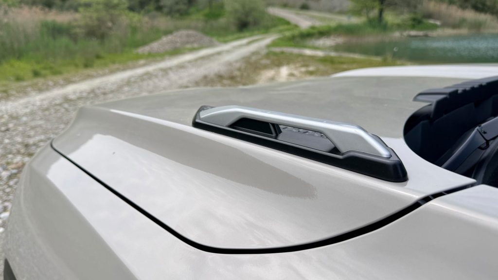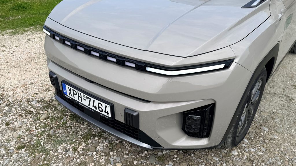 Ξεκινάμε ασφαλώς από την σχεδιάσή του και το μόνο σίγουρο είναι ότι δεν μοιάζει με κανένα άλλο μοντέλο της αγοράς. Κάτι τέτοιο, ομολογουμένως σπανίζει στην εποχή μας. Το εμπρός τμήμα είναι ιδιαίτερα φουτουριστικό, με λεπτά LED φωτιστικά σώματα. Αυτό που σίγουρα θα παρατηρήσει κανείς είναι τα σχεδιαστικά στοιχεία που παραπέμπουν σε “off road” μοντέλα προηγούμενων δεκαετιών, όπως για παράδειγμα η σχεδίαση του πίσω μέρους, η οποία θυμίζει την ρεζέρβα που τοποθετούνταν στην πόρτα του χώρου αποσκευών. Επίσης, υπάρχουν πλαστικές επενδύσεις στο κάτω μέρος του αμαξώματος ώστε να προσφέρουν μία επιπλέον ξεγνοιασιά σε εκτός δρόμου διαδρομές, ράγες στην οροφή, αλλά και οι ιδιαίτεροι γάντζοι στο καπό Όλα αυτά τα στοιχεία, μαζί με τις έντονες γωνιές και τον τετράγωνο σχεδιασμό, δημιουργούν μια “off-road” φιλοσοφία που κάνει το κορεάτικο μοντέλο να ξεχωρίζει στο δρόμο από τα υπόλοιπα SUV. Άλλοι θα λατρέψουν την σχεδίασή του, άλλοι όχι! Το μόνο σίγουρο όμως είναι ότι δεν περνά απαρατήρητο και ο χώρος της αυτοκίνησης έχει ανάγκη… διαφορετικά αυτοκίνητα με πιο “τολμηρό” design. Αναφορικά με τις διαστάσεις, το μήκος του KGM Torres EVX αγγίζει τα 4.715 χλστ., το πλάτος τα 1.890 και το ύψος τα 1.725 χλστ. Η δε απόσταση από το έδαφος αγγίζει τα 17 εκατοστά, ενώ οι ζάντες είναι μεγέθους 18 ιντσών (προαιρετικά προσφέρεται και με 20″).