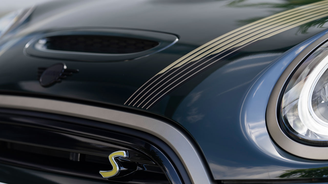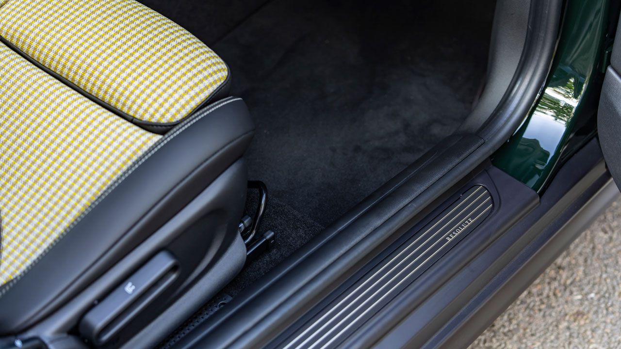 Έχοντας αναφερθεί ξανά στην εμφάνιση του MINI Cooper SE, τώρα αναπόφευκτα θα δώσουμε έμφαση στα στοιχεία της Resolute Edition. Για το χρώμα του αμαξώματος της έκδοσης Resolute, η MINI επέλεξε την πράσινη απόχρωση που αποκαλεί “Rebel Green” και μέχρι πρότινος ήταν διαθέσιμη μόνο για την κορυφαία έκδοση John Cooper Works. Παράλληλα, αντί του χρωμίου, τα αντίστοιχα φιλέτα στον εμπρός προφυλακτήρα, στα πλαίσια των φωτιστικών σωμάτων, στις χειρολαβές όλων των θυρών στις πόρτες και περιμετρικά πίσω από αυτές, αλλά στο κάτω μέρος του παρμπρίζ, φέρουν μπρονζέ φινίρισμα “Resolute Bronze”. Το 3θυρο MINI ξεχωρίζει επίσης από το “Pepper White” ή μαύρο φινίρισμα για την οροφή και τα καλύμματα των εξωτερικών καθρεπτών. Φυσικά δεν απουσιάζουν και τα στοιχεία που “μαρτυρούν” την ηλεκτρική φύση του μοντέλου, όπως το κίτρινο σήμα “E” στο πίσω μέρος. Το μοντέλο έκδοσης διαθέτει ζάντες αλουμινίου 17 ιντσών σε σχέδιο Electric Collection Spoke. Αναφορικά με τις διαστάσεις, το αμάξωμα βάρους 1.440 κιλών έχει μήκος 3.845 χλστ., πλάτος 1.727 και ύψος 1.432 χλστ.