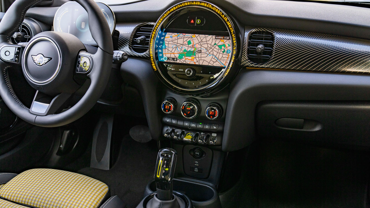 Στην MINI κατάφεραν να κρατήσουν την ευρυχωρία της ηλεκτρικής έκδοσης στα επίπεδα των αντίστοιχων συμβατικών μοντέλων. Έτσι, οι δύο εμπρός έχουν αρκετό χώρο διαθέσιμο αλλά και θήκες μικροαντικειμένων, ενώ πίσω δύο άτομα θα κάνουν κάποιες θυσίες, όπως και στα συμβατικά μοντέλα. Ο χώρος αποσκευών είναι και αυτός ίδιος στα 211 λίτρα, ενώ με την αναδίπλωση της πλάτης των πίσω καθισμάτων φτάνει στα 731 λίτρα. Αλλαγές σαφώς και υπάρχουν σε σχέση με τις συμβατικές εκδόσεις. Εκτός από την αισθητική και τις χρωματικές λεπτομέρειες, ο πίνακας οργάνων έχει αντικατασταθεί από έγχρωμη οθόνη πληροφοριών 5,5 ιντσών, ενώ στο κέντρο του ταμπλό και στο εσωτερικού του κυκλικού οργάνου δεσπόζει η οθόνη 8 ιντσών του συστήματος πολυμέσων. Άλλα ιδιαίτερα χαρακτηριστικά του εσωτερικού περιλαμβάνουν έναν ειδικό επιλογέα στην κεντρική κονσόλα. Το νέο MINI Cooper SE εφοδιάζεται επίσης με ηλεκτρικό χειρόφρενο που ενεργοποιείται μέσω ενός διακόπτη στην κεντρική κονσόλα. Στο εσωτερικό της Resolute Edition συναντάμε καθίσματα στο φινίρισμα Black Pearl/Light Checkered. Το σπορ δερμάτινο τιμόνι φέρει ένα λογότυπο MINI Resolute, ενώ η ίδια “επιγραφή” βρίσκεται και στα μαρσπιέ.