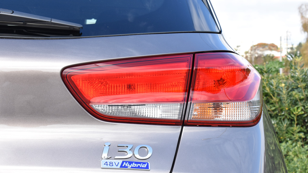Ξεκινώντας από την εξωτερική σχεδίαση, το ανανεωμένο Hyundai i30 απέκτησε νέα εμπρός εικόνα με αλλαγές στον προφυλακτήρα, αλλά και την ενσωμάτωση νέας, μεγάλης γρίλιας. Πλάι στην τελευταία βλέπουμε και την ανανεωμένη σχεδίαση των φωτιστικών σωμάτων με την χαρακτηριστική “υπογραφή” των LED φώτων ημέρας. Από εκεί και πέρα, η εικόνα είναι λίγο πολύ γνώριμη, στο πίσω μέρος συναντάμε την διακριτική αεροτομή που είναι ενσωματωμένη στο αμάξωμα, αλλά και το λογότυπο “48V” που μαρτυρά την ήπια υβριδική τεχνολογία που συνοδεύει την έκδοση της δοκιμής. Οι ζάντες 17 ιντσών, από την άλλη, έρχονται να δώσουν έναν πιο “sportive” χαρακτήρα. Όσο για τις διαστάσεις, το ανανεωμένο Hyundai i30 έχει μήκος 4.340 χλστ., πλάτος 1.795 και ύψος 1.455 χλστ.