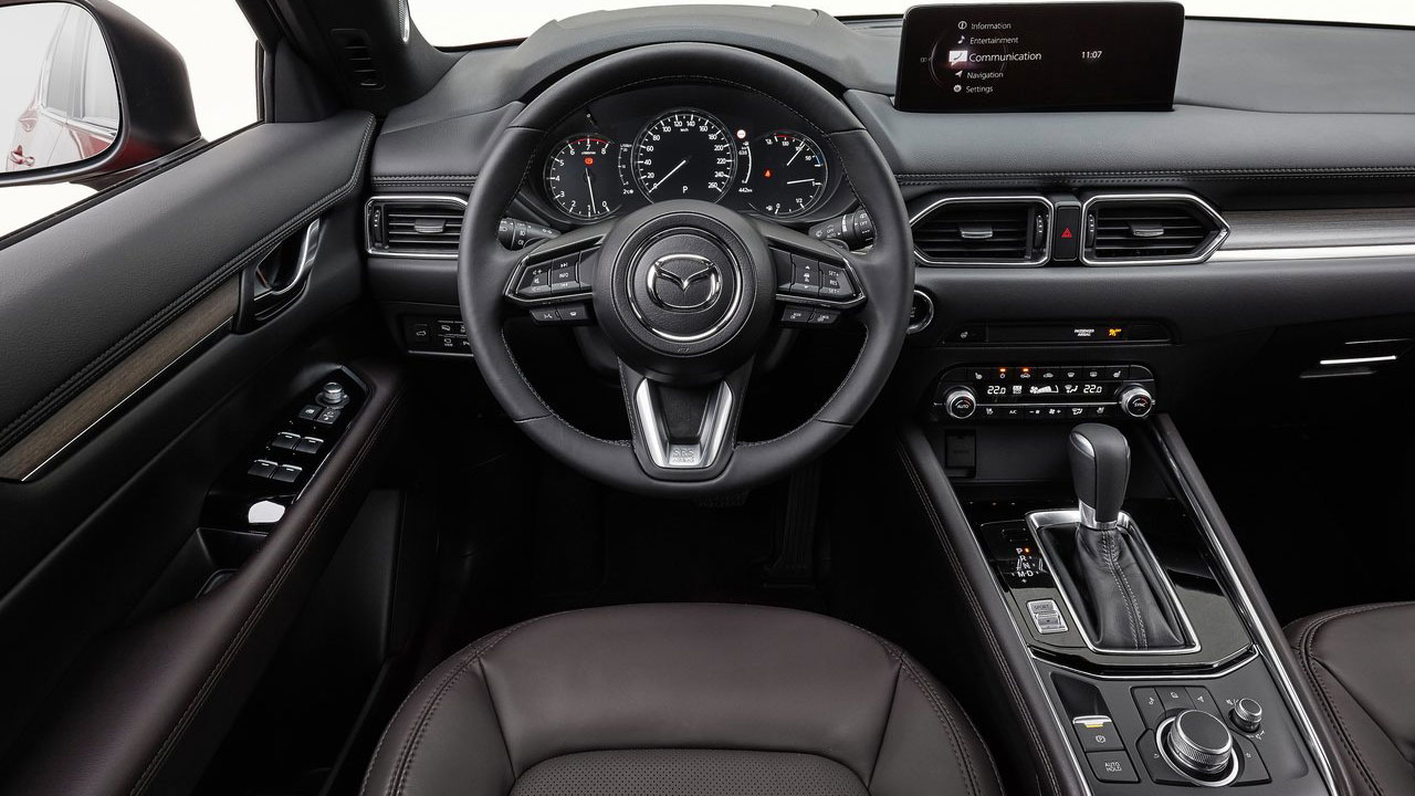 Η έμφαση που δίνει η Mazda στην ποιότητα του εσωτερικού των μοντέλων της είναι γνωστή. Κάτι παρόμοιο ισχύει και για το Mazda CX-5, το οποίο καταφέρνει να στέκεται άκρως ανταγωνιστικά σε αυτόν τον τομέα απέναντι στον “premium” γερμανικό ανταγωνισμό. Όπου κι αν κοιτάξει ο οδηγός, θα συναντήσει ποιοτικά υλικά και μαλακές στην υφή επιφάνειες. Πέρα όμως από ποιοτικό, το περιβάλλον είναι και άκρως ψηφιακό, καταφέρνοντας όμως να φέρει γρήγορα την εξοικείωση στον οδηγό. Πίσω από το τιμόνι υπάρχει μία μικρή ψηφιακή οθόνη, η οποία συνδυάζεται με αναλογικούς δείκτες. Οι πληροφορίες που παρέχει είναι υπεραρκετές και κυρίως… ευανάγνωστες! Ταυτόχρονα, στην κεντρική κονσόλα συναντάμε την οθόνη για την ενημέρωση και ψυχαγωγία των επιβατών. Ελέγχεται από έναν περιστροφικό διακόπτη, όπως συμβαίνει στα μοντέλα της Mazda, είναι οριζόντια τοποθετημένη και το μέγεθός της αγγίζει τις 10,25 ίντσες. Μέσω αυτής δίνεται, εκτός των άλλων, δυνατότητα συνδεσιμότητας Android Auto / Apple CarPlay, ενώ δεν απουσιάζει και το σύστημα παρακολούθησης 360 μοιρών. Ασφαλώς, δεν θα μπορούσαμε να μην αναφερθούμε στην ηλιοροφή, αλλά και στο ηχοσύστημα Bose που βρίσκονται ωστόσο στον προαιρετικό εξοπλισμό.