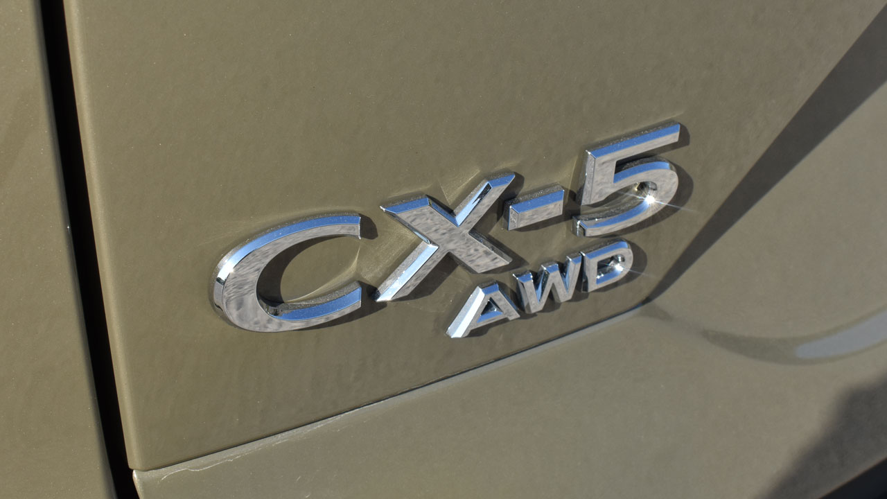 Ξεκινάμε όπως πάντα από την εξωτερική σχεδίαση του Mazda CX-5, το οποίο “μαρτυρά” με το καλημέρα ότι ανήκει στη γκάμα της ιαπωνικής εταιρείας. Βλέπετε, υπάρχουν αρκετά στοιχεία που αποτελούν σήμα κατατεθέν της εταιρείας, όπως για παράδειγμα τα λεπτά φωτιστικά σώματα και η μεγάλη, μαύρη μάσκα. Στο πλαϊνό τμήμα συναντάμε ζάντες 19 ιντσών σε μαύρη απόχρωση, οι οποίες συνδυάζονται με μαύρα καπάκια στους καθρέπτες και μαύρες επιφάνειες στο κάτω τμήμα του αμαξώματος. Επιπλέον αξιοσημείωτα στοιχεία είναι η διπλή απόληξη της εξάτμισης, αλλά και το σηματάκι “AWD” στο πίσω μέρος, το οποίο υποδεικνύει την ύπαρξη συστήματος τετρακίνησης. Πάμε και στις διαστάσεις, με το αμάξωμα του Mazda CX-5 να ξεπερνά οριακά τα 4,5 μέτρα (4.575 χλστ. για την ακρίβεια). Το μήκος αγγίζει τα 1.845 και το πλάτος τα 1.680 χλστ. αντίστοιχα.