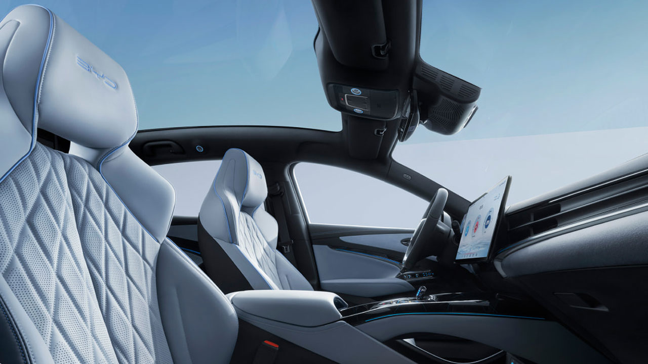 Μόλις αποκαλυφθεί η “κρυφή” χειρολαβή και ο οδηγός περάσει στην καμπίνα του BYD Seal, το βλέμμα στρέφεται κατευθείαν στην εντυπωσιακή, περιστρεφόμενη οθόνη μεγέθους 15,6 ιντσών. Ξεκινάμε από αυτήν, μιας και μέσω αυτής ελέγχονται σχεδόν όλα τα συστήματα του οχήματος. Μεταξύ άλλων προσφέρει “έξυπνη” λειτουργία φωνητικού ελέγχου, δυνατότητες συνδεσιμότητας smartphone μέσω Android Auto ή Apple CarPlay και προβολή κάμερας 360 μοιρών που διευκολύνει σημαντικά τον έλεγχο του αμαξώματος. Ξεχωριστή αναφορά αξίζει να γίνει στον έλεγχο του κλιματισμού, ο οποίος γίνεται επίσης μέσω της οθόνης. Μάλιστα παρέχει και διάφορες λειτουργίες, όπως το “Avoid” που ρυθμίζει την ροή του αέρα με τέτοιο τρόπο ώστε να μην ενοχλεί τον οδηγό ή τον συνοδηγό. “Bonus” για την άνεση προσφέρουν επίσης τα θερμαινόμενα – αεριζόμενα καθίσματα. Το όχημα είναι εξοπλισμένο με ένα