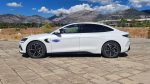 Υπάρχει, όμως, και ένα άλλο! Αυτό που εμφανίζεται με την επιλογή του “Sport” προγράμματος οδήγησης. Σε αυτή την περίπτωση, το ηλεκτρικό μοντέλο σε καμία περίπτωση δεν θα γίνει “hardcore τετράτροχο”, αλλά στο πάτημα του γκαζιού θα επιταχύνει ακαριαία. Τρομακτικά θα έλεγα από τα 0 έως τα 80 χλμ./ώρα. Αλλά δεν είναι μόνο η βίαιη επιτάχυνση! Η διαχείριση του βάρους από την ανάρτηση με διπλά ψαλίδια εμπρός και πολλαπλούς συνδέσμους πίσω είναι εξαιρετική ακόμα και σε οριακές καταστάσεις, τα ισχυρά φρένα λειτουργούν αποτελεσματικά ακόμα και σε καταπονήσεις διαρκείας χωρίς η ανάκτηση ενέργειας να αλλοιώνει την γραμμικότητα του πεντάλ (σπάνιο σε ηλεκτρικά οχήματα). Μόνο το τιμόνι θα ήθελα να προσφέρει λίγο καλύτερη πληροφόρηση (εξακολουθεί να “κρατά” σε απόσταση τον οδηγό από το έδαφος). Επίσης, ιδανικά θα ήθελα και η θέση οδήγησης να τοποθετείται λίγο πιο χαμηλά.