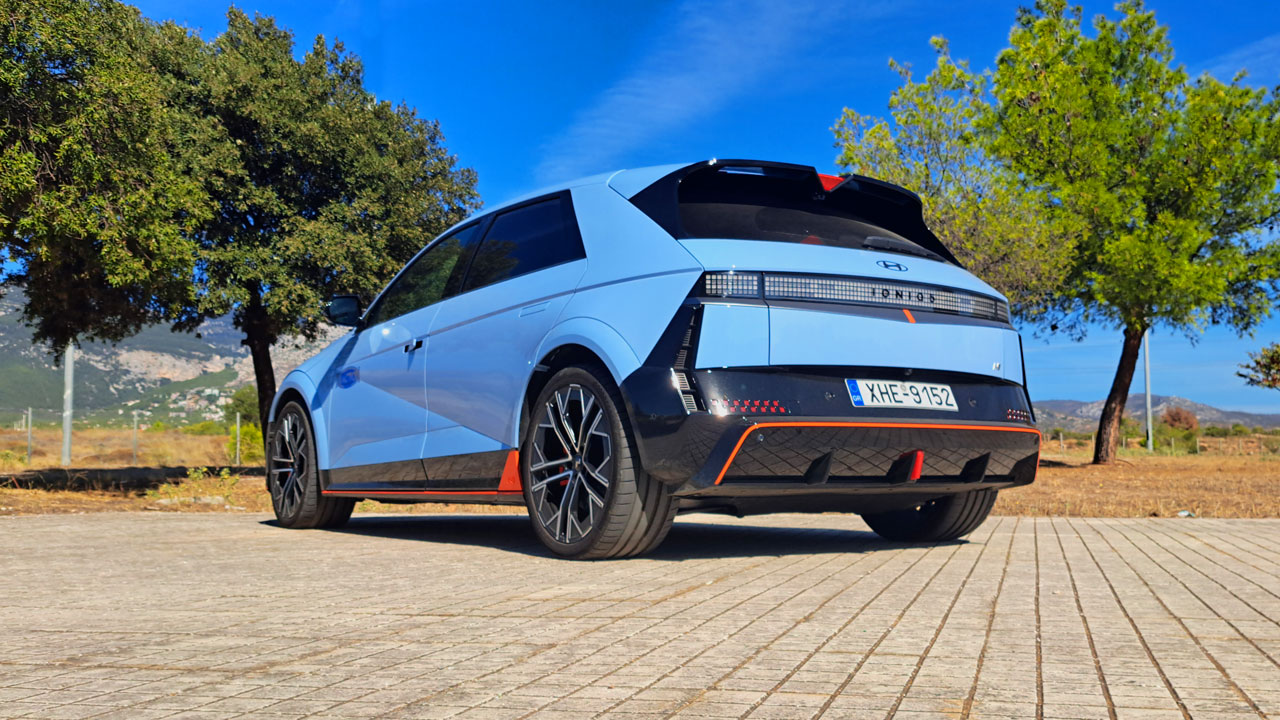 Κατά τα άλλα, η ηλεκτρονικά ελεγχόμενη ανάρτηση (πολλαπλών συνδέσμων πίσω) και το ηλεκτρονικό διαφορικό περιορισμένης ολίσθησης (e–LSD) προσφέρουν κορυφαία συμπεριφορά στις στροφές. Σίγουρα η απόσβεση των ανωμαλιών δεν είναι αυτή του “απλού” Ioniq 5 (παίζουν ρόλο και οι 21 ιντσών ζάντες σε αυτό), αλλά σε καμία περίπτωση δεν είναι κουραστικό στην πόλη. Μόνο στοιχείο που προβλημάτισε είναι οι μανούβρες στα στενά, με τον κύκλο στροφής των 12,42 μέτρων να το επιβεβαιώνει. Όσο για το τιμόνι, ειδικά στο Sport Mode προσφέρει το σωστό βάρος και καλή πληροφόρηση, ενώ τα φρένα εντυπωσιάζουν με την ισχύ τους και την αντοχή σε καταπονήσεις (δαγκάνες τεσσάρων εμβόλων εμπρός). Τα τελευταία έχουν και λειτουργία Left–Foot Braking, δυνατότητα που επιτρέπει τη χρήση της τεχνικής “φρεναρίσματος με το αριστερό πόδι”, όταν πατιούνται ταυτόχρονα τόσο το πεντάλ φρένου όσο και το πεντάλ γκαζιού.
