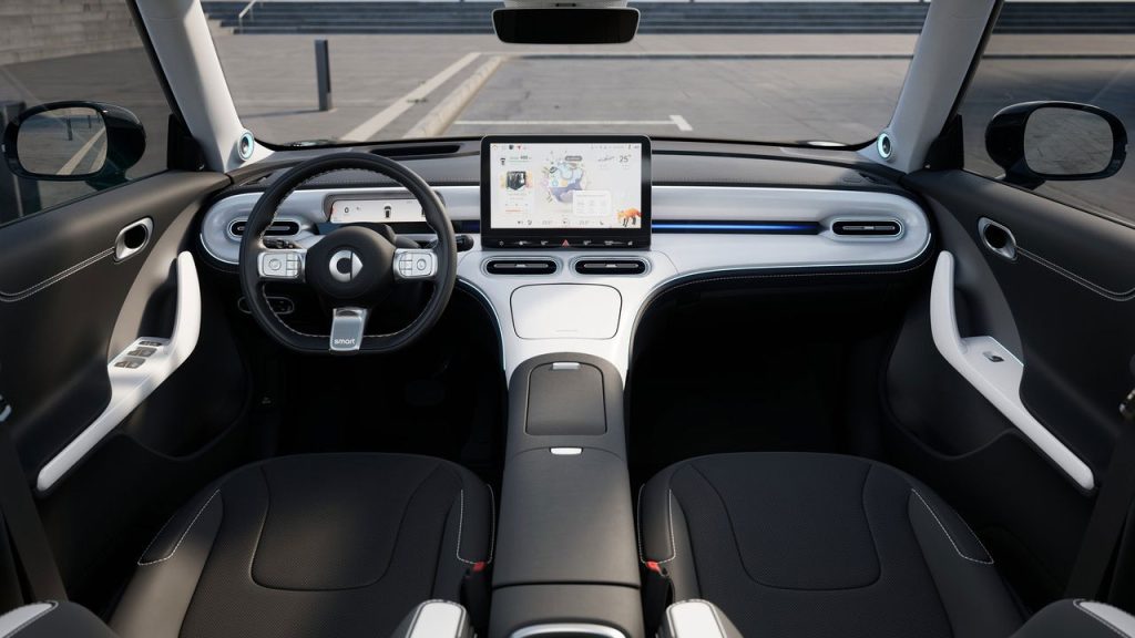Περνώντας στο εσωτερικό, το smart #3 ξεχωρίζει με την κορυφαία ποιότητα των υλικών, ενώ σε εξαιρετικό επίπεδο βρίσκεται και η πρακτικότητα. Ενδεικτικά, αξίζει να αναφέρουμε ότι ο διαθέσιμος χώρος για τις αποσκευές αγγίζει τα 370 λτ. Το smart #3 διακρίνεται και για τον κορυφαίο εξοπλισμό από την βασική έκδοση. Το πακέτο “Pro” περιλαμβάνει μεταξύ άλλων θερμαινόμενα και ηλεκτρικά ρυθμιζόμενα καθίσματα οδηγού και συνοδηγού, ενώ στον στάνταρ εξοπλισμό βρίσκεται και η οθόνη αφής μεγέθους 12,8 ιντσών. Η συγκεκριμένη διακρίνεται για την κορυφαία ευκρίνεια, ενώ ενσωματώνει συστήματα συνδεσιμότητας Android Auto και Apple CarPlay. Επιπλέον, υπάρχει κάμερα 360 μοιρών και πολλά ακόμη στοιχεία που διευκολύνουν την καθημερινότητα του οδηγού. Το “ψηφιακό” περιβάλλον συνεχίζεται με την επίσης στάνταρ οθόνη 9,2 ιντσών πίσω από το τιμόνι σε ρόλο πίνακα οργάνων, ενώ στις πλουσιότερες εκδόσεις συναντάμε και Head-Up Display μεγέθους 10 ιντσών. Η κορυφαία ατμόσφαιρα στο εσωτερικό του smart #3 ολοκληρώνεται με στοιχεία που το κάνουν να ξεχωρίζει, όπως για παράδειγμα ο φωτισμός Ambient Lighting+, οι δερμάτινες επενδύσεις και η πανοραμική, θερμοαπορροφητική οροφή αλλά και οι κόκκινες ζώνες της έκδοσης Brabus. Το smart #3 διαθέτει τεχνητή νοημοσύνη που επιτρέπει στο αυτοκίνητο να “μαθαίνει” τις ανάγκες του οδηγού και να προσαρμόζεται σε αυτές. Όλα ξεκινούν με την απλή εντολή “hello smart” και ο έξυπνος φωνητικός βοηθός θα ενεργοποιηθεί προκειμένου να εκτελέσει κάθε εντολή, όπως για παράδειγμα να βρει κάποιον προορισμό και να ξεκινήσει το πρόγραμμα πλοήγησης.
