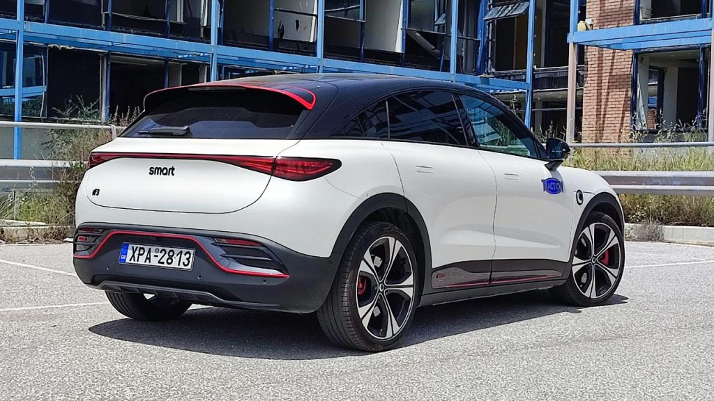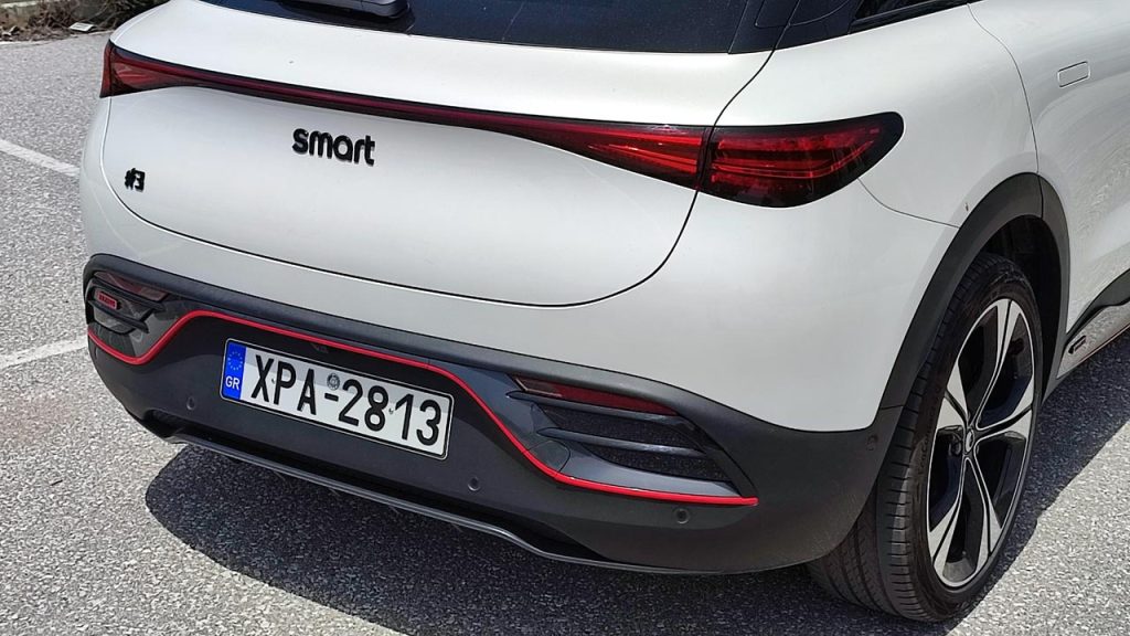 Η νέα smart λοιπόν, διαθέτει πλέον αμιγώς ηλεκτρικά SUVs στην γκάμα της, τα smart #1 και smart #3 στις κατηγορίες των B και C-SUV αντίστοιχα. Το smart #3 είναι ήδη διαθέσιμο στην ελληνική αγορά και ένα από τα πιο “δυνατά” του χαρακτηριστικά είναι η εμφάνιση. Στο εμπρός τμήμα του αμαξώματος μήκους 4,4 μέτρων συναντάμε εντυπωσιακά σώματα που ενώνονται με μία LED λωρίδα. Στο πλάι υπάρχουν “κρυφές” χειρολαβές και ζάντες που αγγίζουν σε μέγεθος ακόμα και τις 20 ίντσες. Αναμφισβήτητα, όμως, το πιο εντυπωσιακό σημείο του οχήματος είναι το πίσω, εκεί όπου συναντάμε την κεκλιμένη οροφή που δίνει μία coupe διάσταση στο SUV της smart. Τα φωτιστικά σώματα και σε αυτή την περίπτωση ενώνονται με μία όμορφη LED λωρίδα. Από το εντυπωσιακό αμάξωμα του smart #3 εννοείται πως δεν απουσιάζουν και τα crossover στοιχεία, όπως για παράδειγμα οι μαύρες επενδύσεις στα κατώτερα τμήματα του αμαξώματος. Όπως συμβαίνει σε όλα τα μοντέλα της smart, υπάρχει δυνατότητα εξατομίκευσης σύμφωνα με τις επιθυμίες του αγοραστή, ο οποίος μπορεί να επιλέξει ανάμεσα σε πληθώρα χρωματικών συνδυασμών (προσφέρεται και δυνατότητα διχρωμίας όπως στην περίπτωση του αυτοκινήτου της δοκιμής μας).