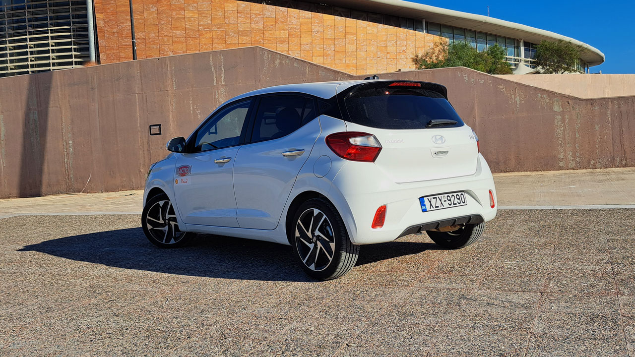 Το Hyundai i10 είναι παραδοσιακά ένα “όπλο” πόλης και σε αυτή τη τελευταία γενιά του παρουσιάζεται καλύτερο από ποτέ. Στην καθημερινότητα σου λύνει τα χέρια με την ευρυχωρία της καμπίνας τους και τις πρακτικές λύσεις αποθήκευσης αντικειμένων που φέρει στην κεντρική του κονσόλα, στις πόρτες αλλά και το ταμπλό. Με το μοτέρ 84 ίππων μπορεί με αξιώσεις να βγει εκτός πόλης, αφού δεν στερείται ούτε δύναμης, αλλά ούτε και σταθερότητας. Τα φρένα μπορούν να διαχειριστούν ικανοποιητικά το βάρος του αμαξώματος (δίσκοι και πίσω στην έκδοση της δοκιμής), ενώ η ανάρτηση “φιλτράρει” αποτελεσματικά τις ανωμαλίες του οδοστρώματος. Όσο για το τιμόνι, προσφέρει ικανοποιητική πληροφόρηση για αυτοκίνητο πόλης, ενώ “κόβει” αρκετά ώστε να προκύψει κύκλος στροφής με ακτίνα 10 μέτρων. Όσο για το κιβώτιο, όπως αναφέραμε απαιτεί εξοικείωση, αλλά όσοι το επιλέξουν θα κάνουν ένα δώρο στον εαυτό τους και θα το εκτιμήσουν στις καθημερινές αστικές μετακινήσεις.