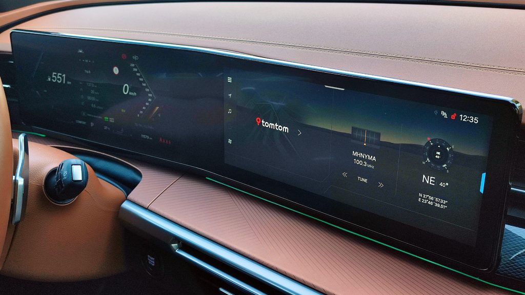 Στο εσωτερικό, η εικόνα είναι πλήρως εναρμονισμένη με τα σύγχρονα standards της κατηγορίας. Το ταμπλό φιλοξενεί δύο οθόνες 12,3 ιντσών, μία για τον ψηφιακό πίνακα οργάνων και μία για το infotainment, με πλήρη υποστήριξη συνδεσιμότητας. Η ποιότητα κατασκευής κινείται σε υψηλό επίπεδο, με προσεγμένα υλικά και σωστή συναρμογή, ενώ η πρακτικότητα αποτελεί βασικό πλεονέκτημα. Οι χώροι για επιβάτες είναι άνετοι, ενώ ο χώρος αποσκευών φτάνει τα 703 λίτρα, νούμερο που μπορεί να αυξηθεί σημαντικά με την αναδίπλωση των πίσω καθισμάτων. Παράλληλα, δεν λείπουν σύγχρονες λειτουργίες όπως πανοραμική κάμερα 360 μοιρών και προηγμένα συστήματα υποβοήθησης. Αυτό που μου έκανε θετική εντύπωση είναι η προσοχή που έχει δοθεί στην λεπτομέρεια (για παράδειγμα η ποιότητα κατασκευής στα κουρτινάκια των πίσω παραθύρων), ενώ στο εσωτερικό υπάρχουν πολλές πρακτικές λύσεις και θήκες μικροαντικειμένων. Για παράδειγμα οι τσέπες στις πλάτες των εμπρός καθισμάτων έχουν και εξωτερικές θήκες με ειδικό χώρο για smartphone (κάτι που θα εκτιμήσουν σίγουρα οι πίσω επιβάτες).