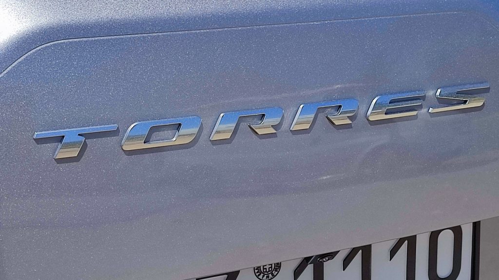 Ξεκινώντας από τη σχεδίαση, δεν αλλάζει η βασική φιλοσοφία που κάνει το Torres να ξεχωρίζει. Το αμάξωμα διατηρεί τον έντονα «τετραγωνισμένο» χαρακτήρα, με εμφανείς αναφορές σε κλασικά off-road οχήματα. Το εμπρός μέρος με τα λεπτά LED φωτιστικά σώματα και τη δυναμική μάσκα αποπνέει φουτουρισμό, ενώ στο πίσω τμήμα οι σχεδιαστικές λεπτομέρειες που θυμίζουν εξωτερική ρεζέρβα ενισχύουν τον adventure χαρακτήρα. Οι προστατευτικές ποδιές, οι ράγες οροφής και τα έντονα νεύρα του αμαξώματος συμπληρώνουν ένα σύνολο που δύσκολα περνά απαρατήρητο. Σε επίπεδο διαστάσεων, το μήκος φτάνει τα 4.705 χλστ., το πλάτος τα 1.890 χλστ. και το ύψος τα 1.710 χλστ, με την απόσταση από το έδαφος να διαμορφώνεται στα 170 χλστ.